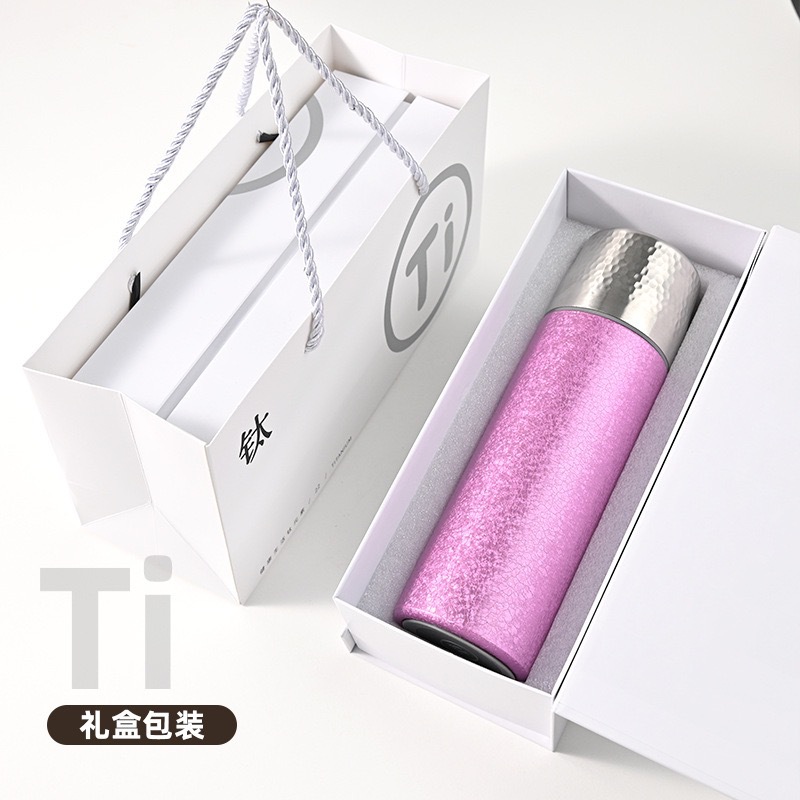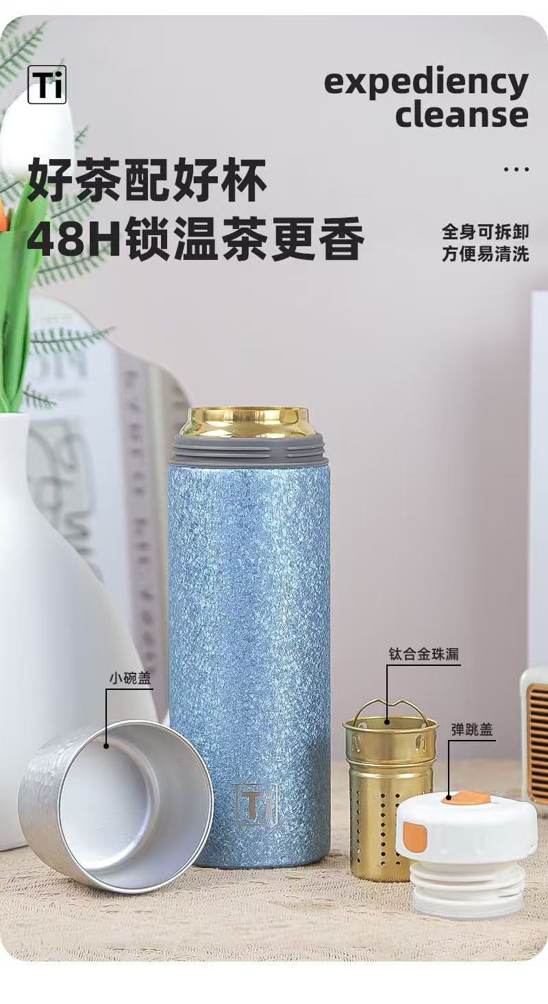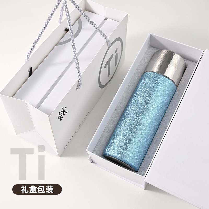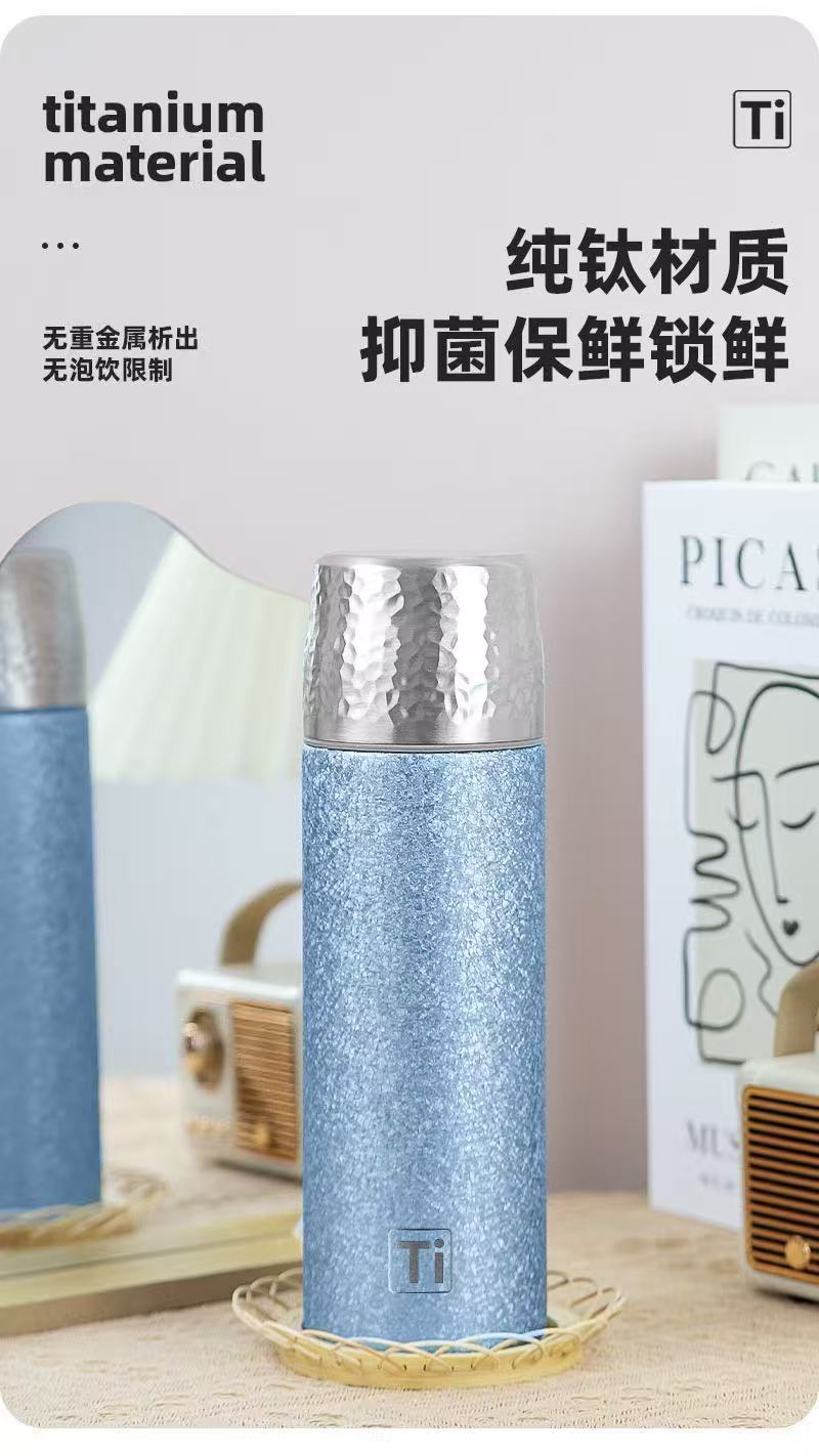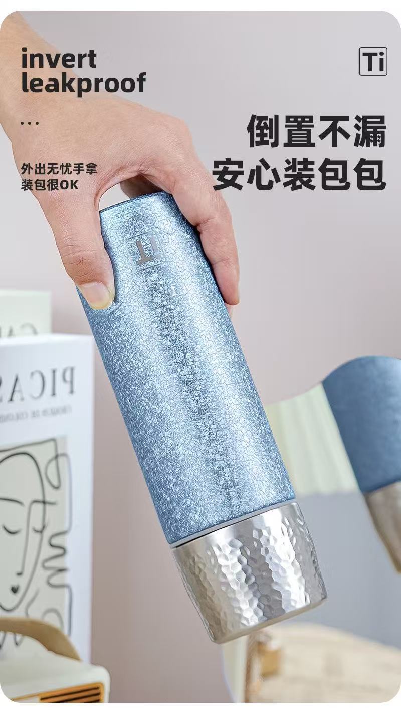 새로운 망치 패턴 컵 뚜껑 진공 이중층 절연 컵 차와 물 분리 티타늄 컵 휴대용 워터 컵 비즈니스 라이트 럭셔리 선물 컵스토어 가기