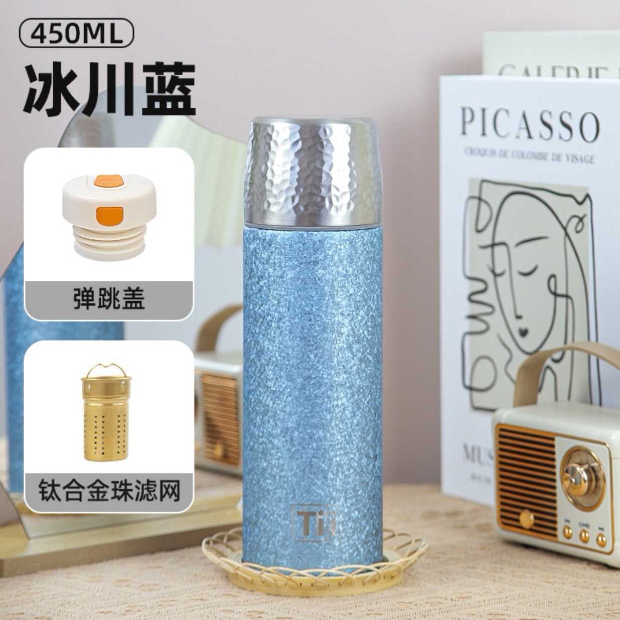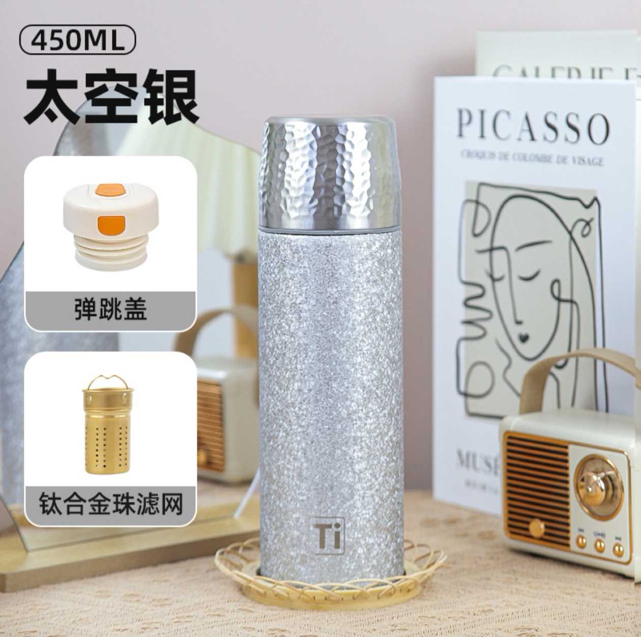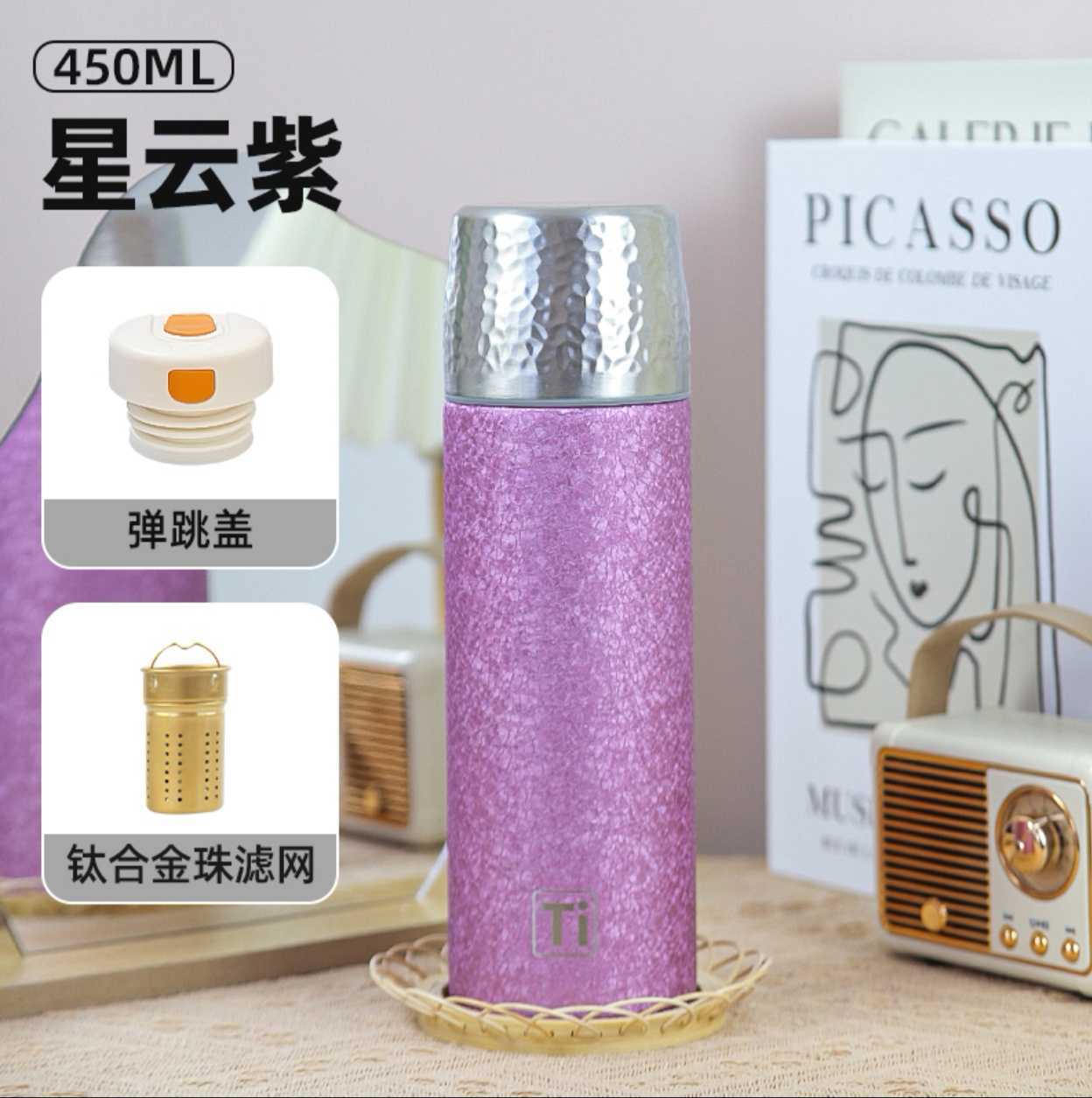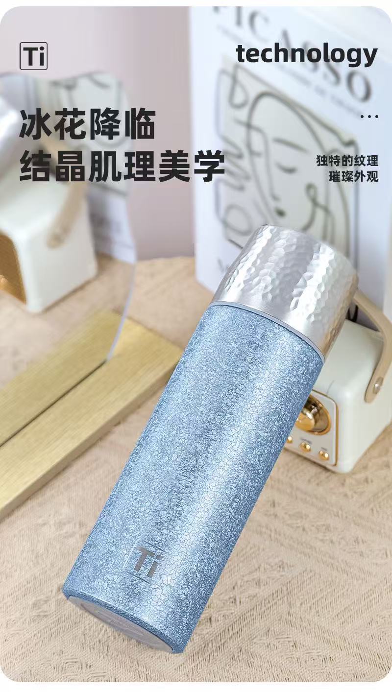 새로운 망치 패턴 컵 뚜껑 진공 이중층 절연 컵 차와 물 분리 티타늄 컵 휴대용 워터 컵 비즈니스 라이트 럭셔리 선물 컵스토어 가기