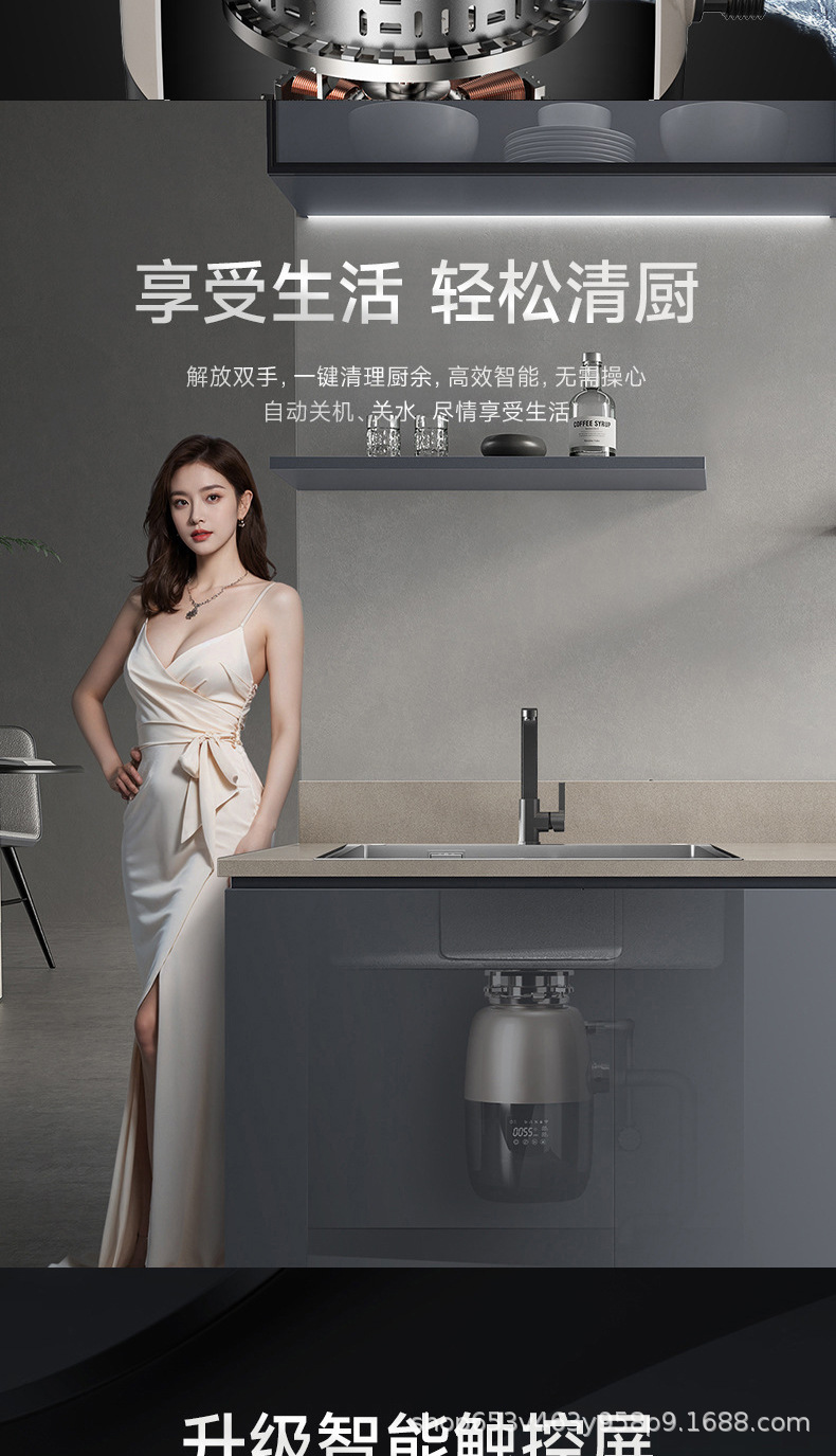 새로운 X30 DC 브러시리스 가변 주파수 고전력 영어 유럽 표준 음식물 쓰레기 처리 주방 하수구 싱크대스토어 가기