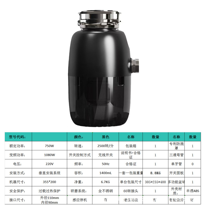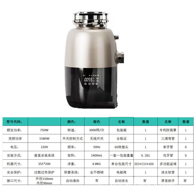 새로운 X30 DC 브러시리스 가변 주파수 고전력 영어 유럽 표준 음식물 쓰레기 처리 주방 하수구 싱크대