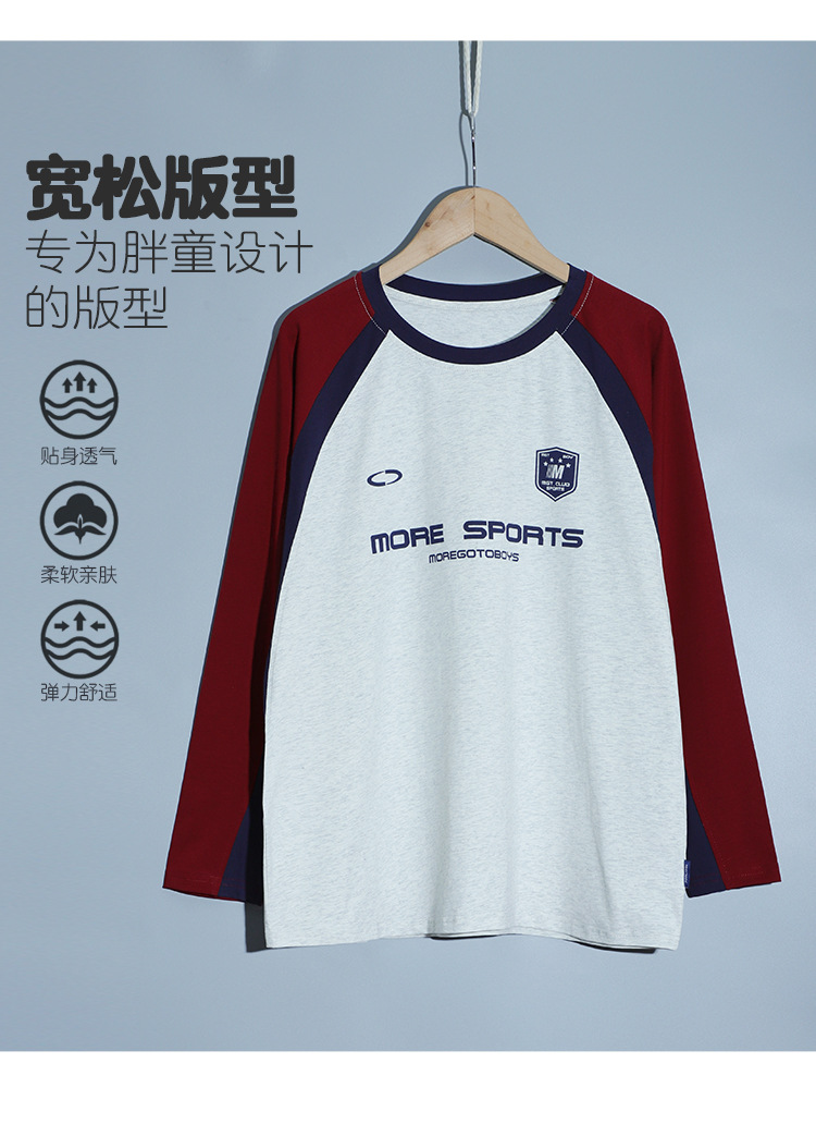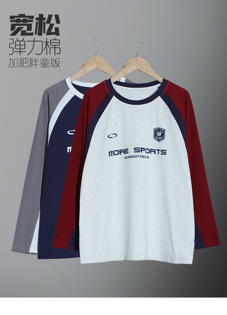뚱뚱한 아동복 소년 플러스 사이즈 긴팔 티셔츠 봄, 가을 얇은 2025 새로운 청소년 소년 바닥 셔츠 유행스토어 가기