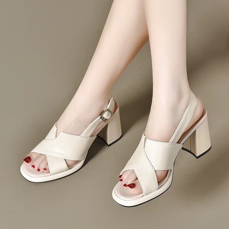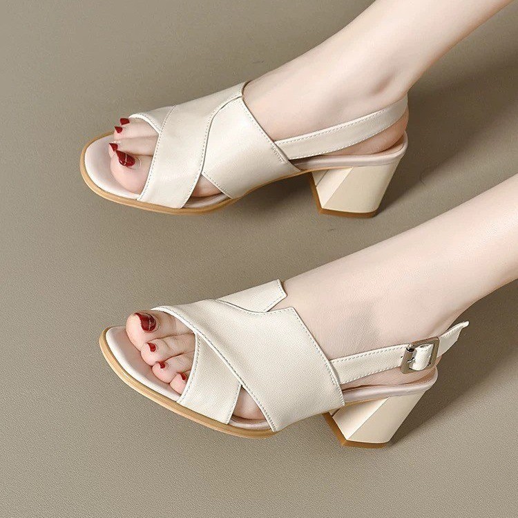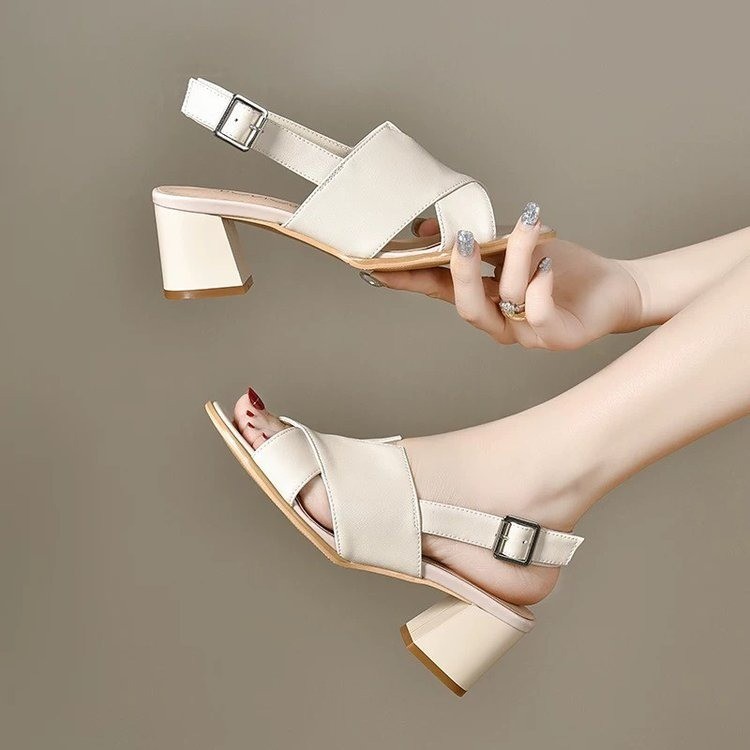 하이힐 샌들 여성용 아우터웨어 2025 새로운 여름 방수 플랫폼 두꺼운 힐 올매치 두꺼운 바닥 버클 리어 빈 샌들스토어 가기