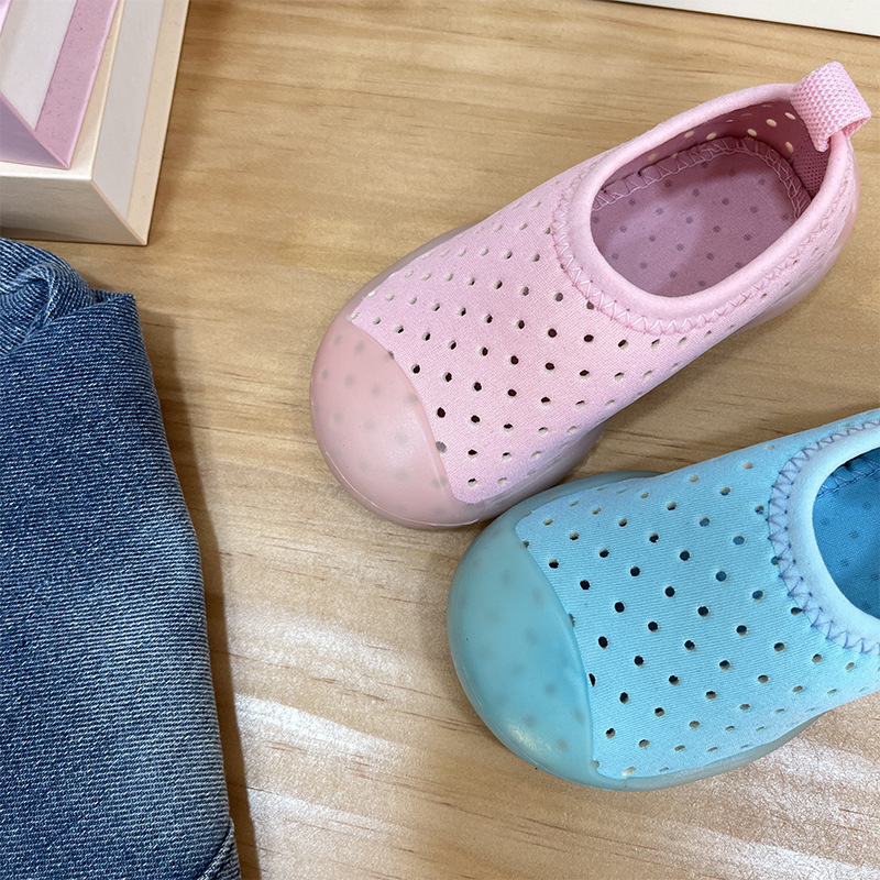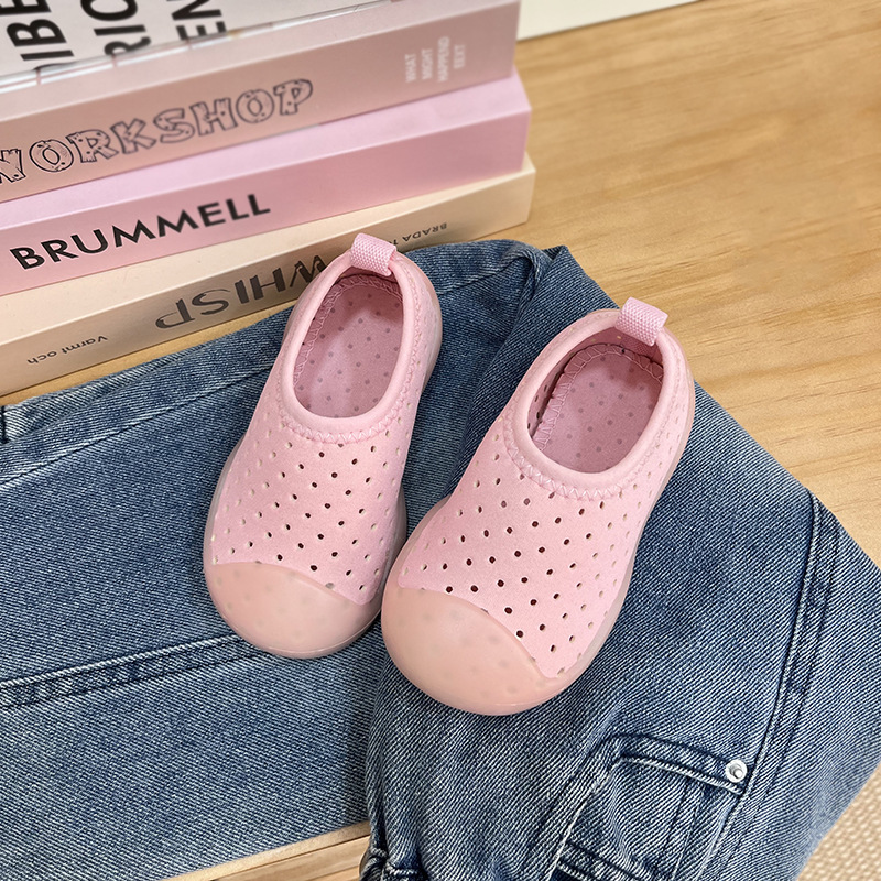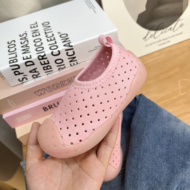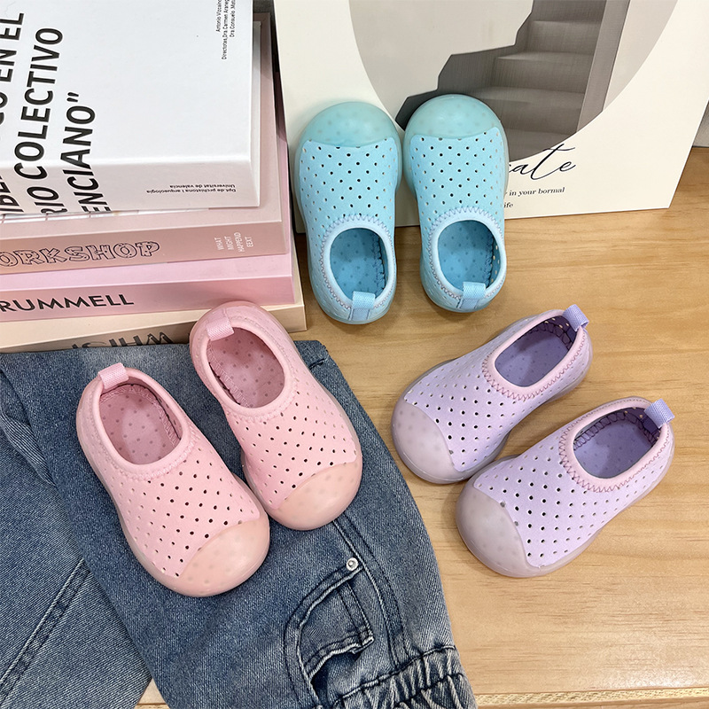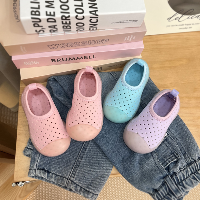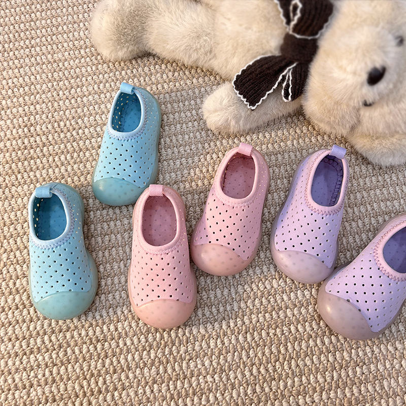 봄과 여름 아기 나막신 부드러운 밑창 유아 탄성 천 통기성 구멍 소년과 소녀를위한 단색 신발스토어 가기