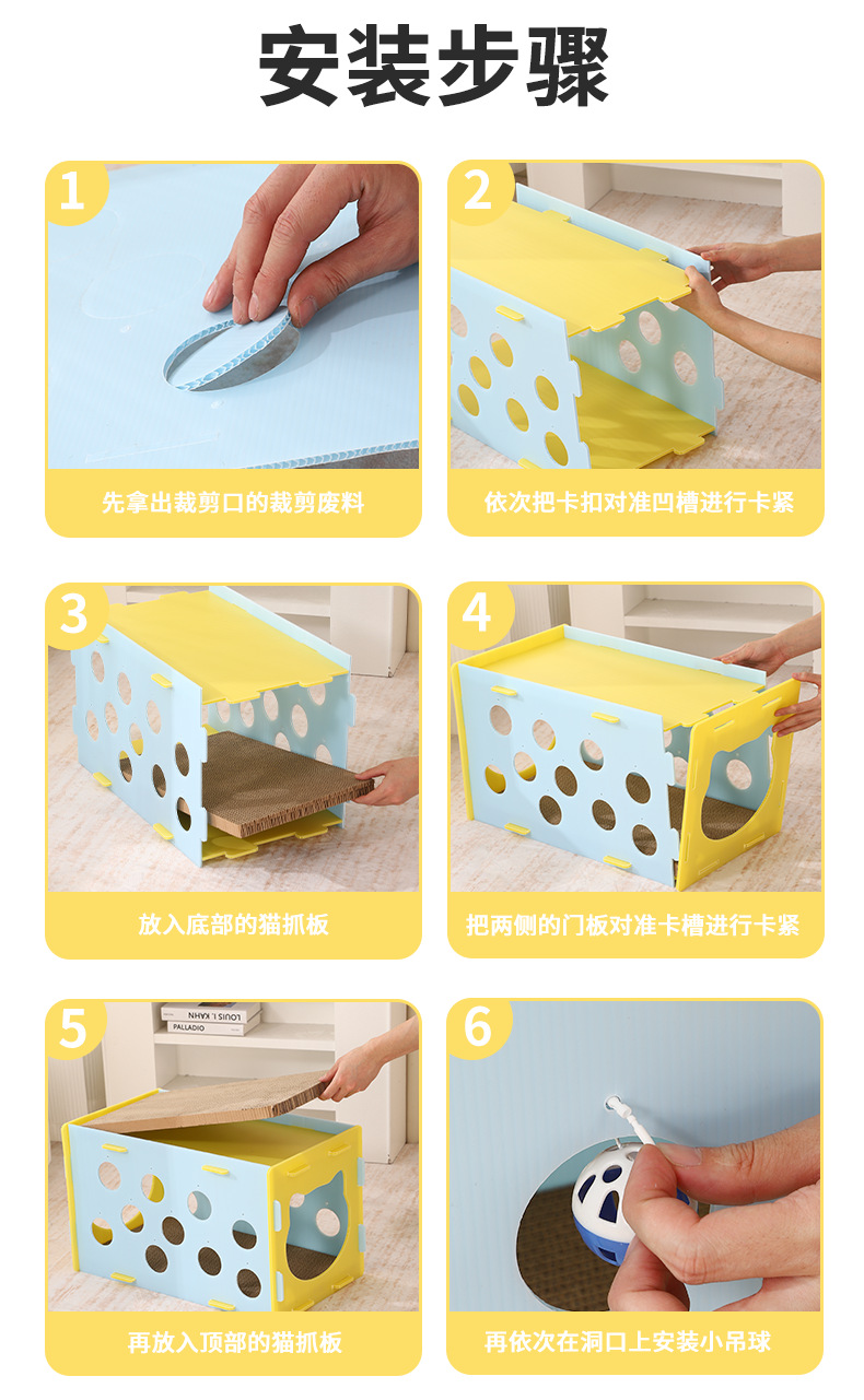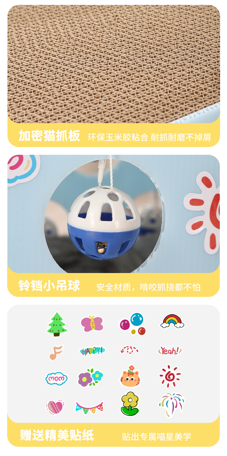产品内容:6片pp板,2块猫抓板,20个铃铛(配吊绳),精美贴纸