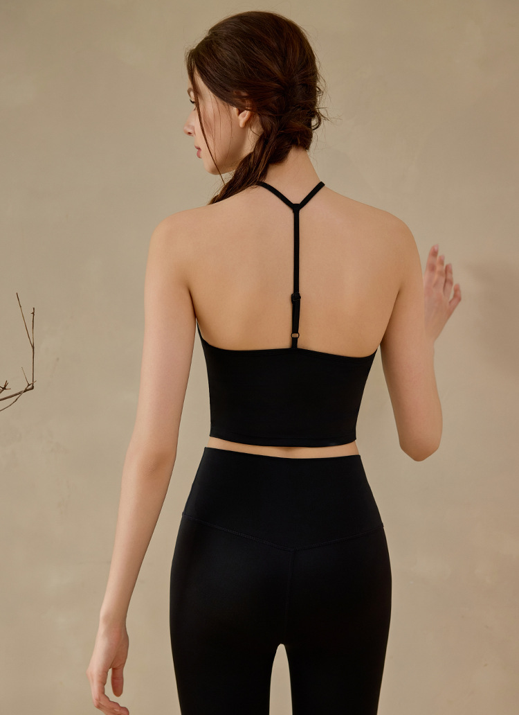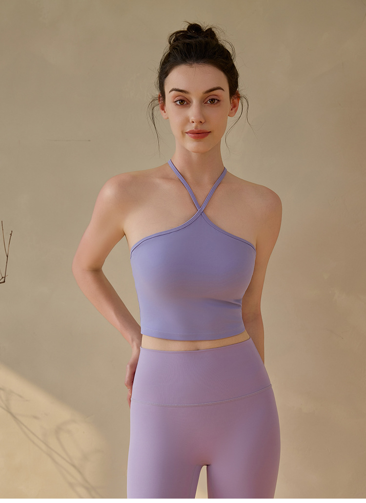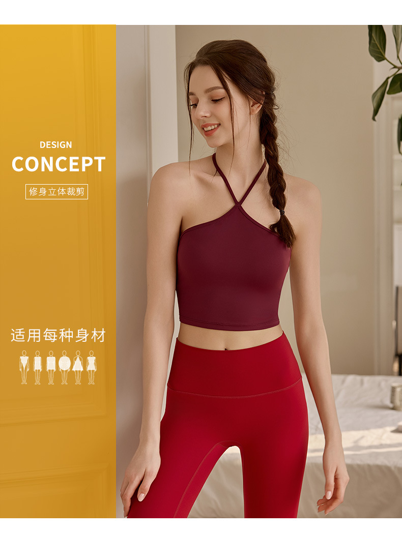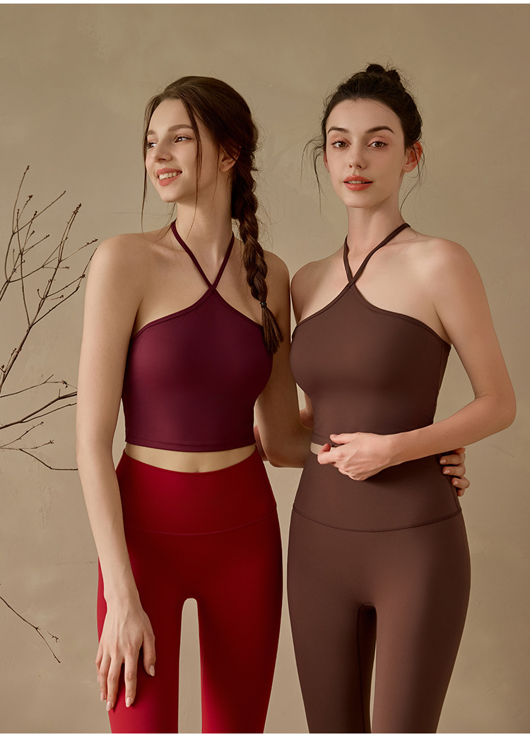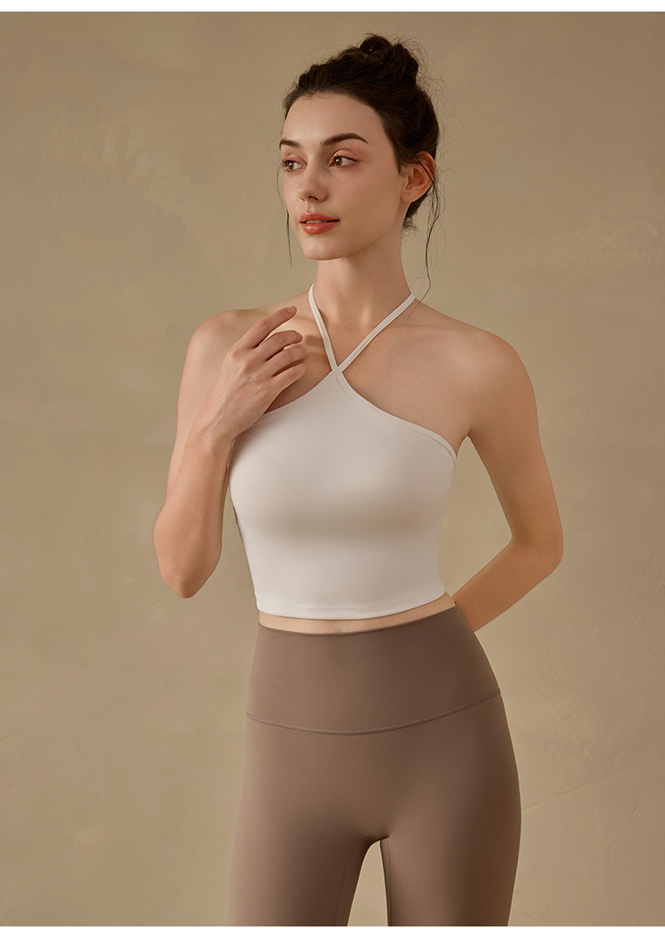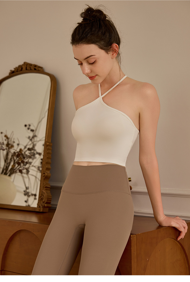 고정된 가슴 패드가 있는 중국식 슬링 홀터넥 조끼 요가 탑, 조절 가능한 스포츠 피트니스 필라테스 브라스토어 가기