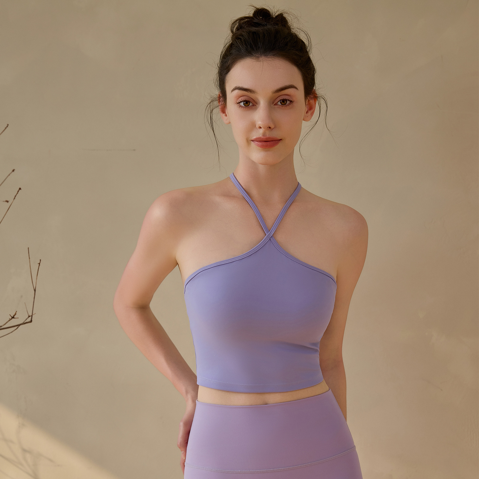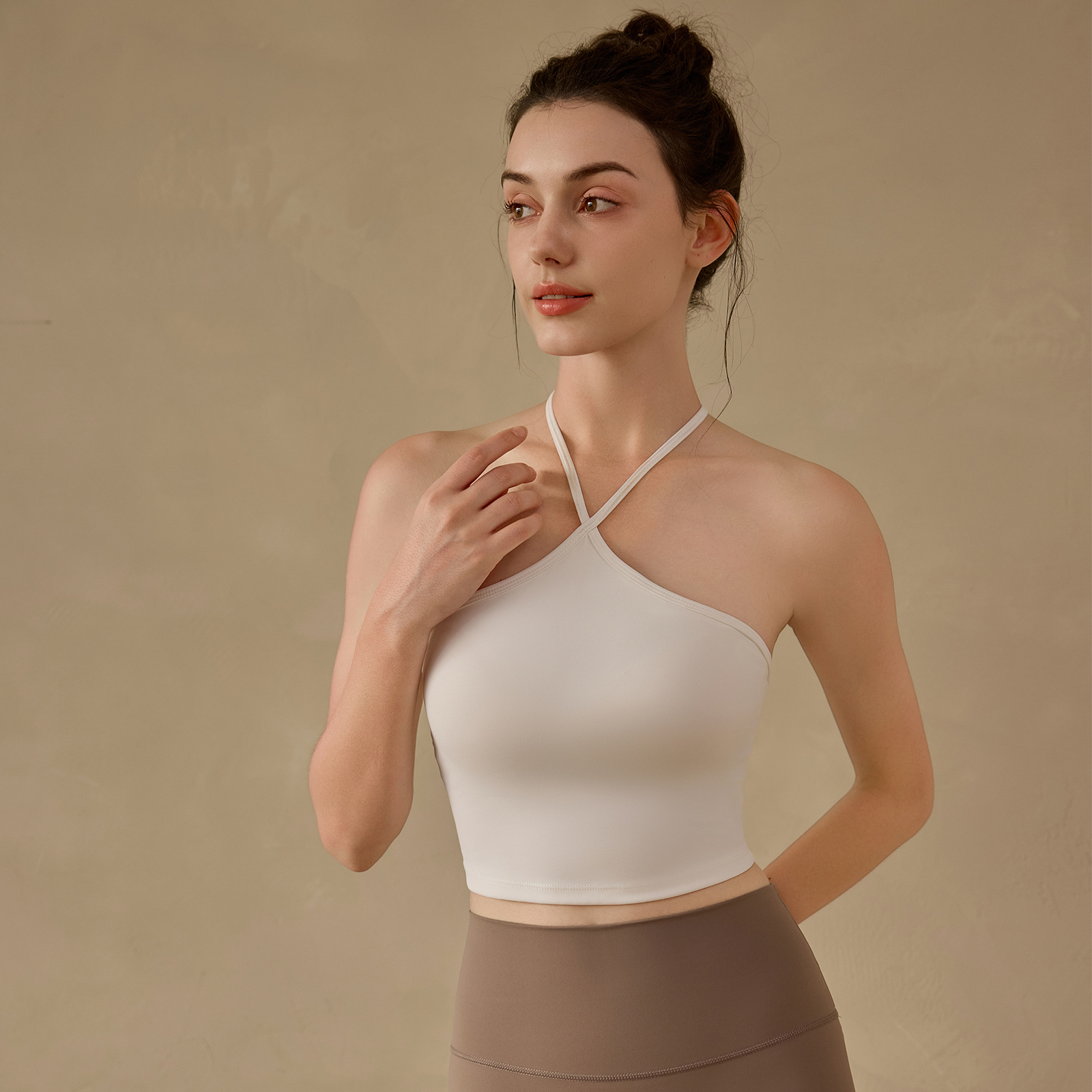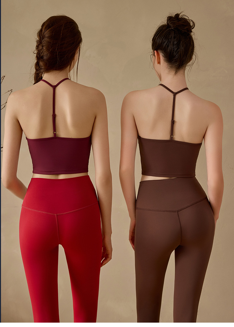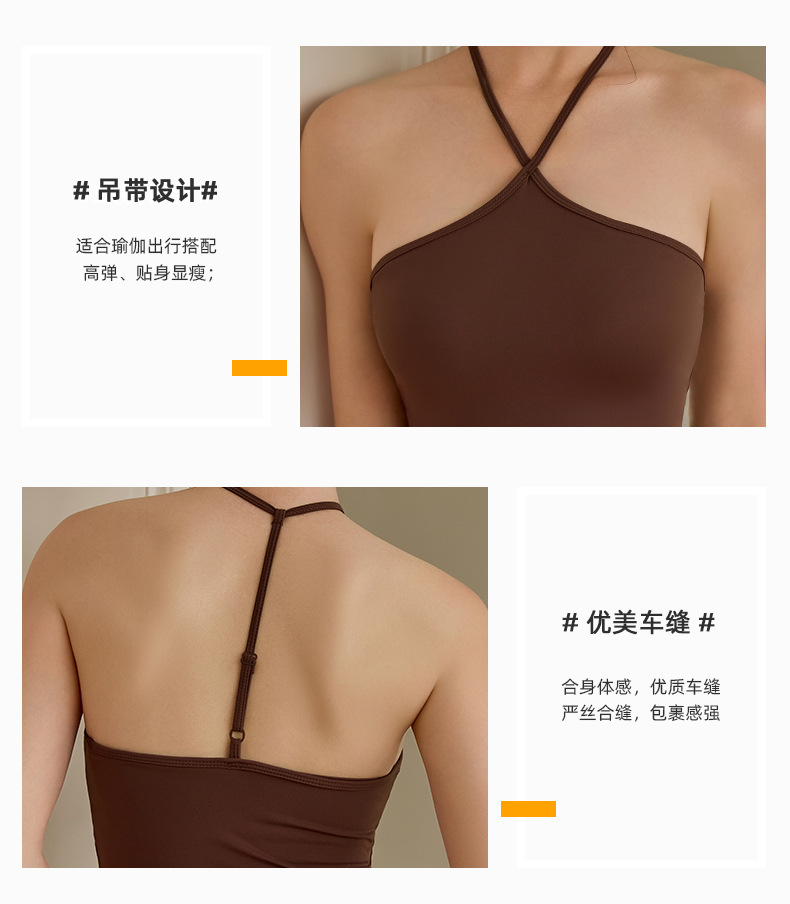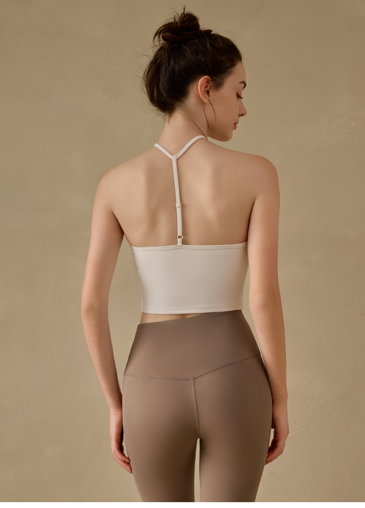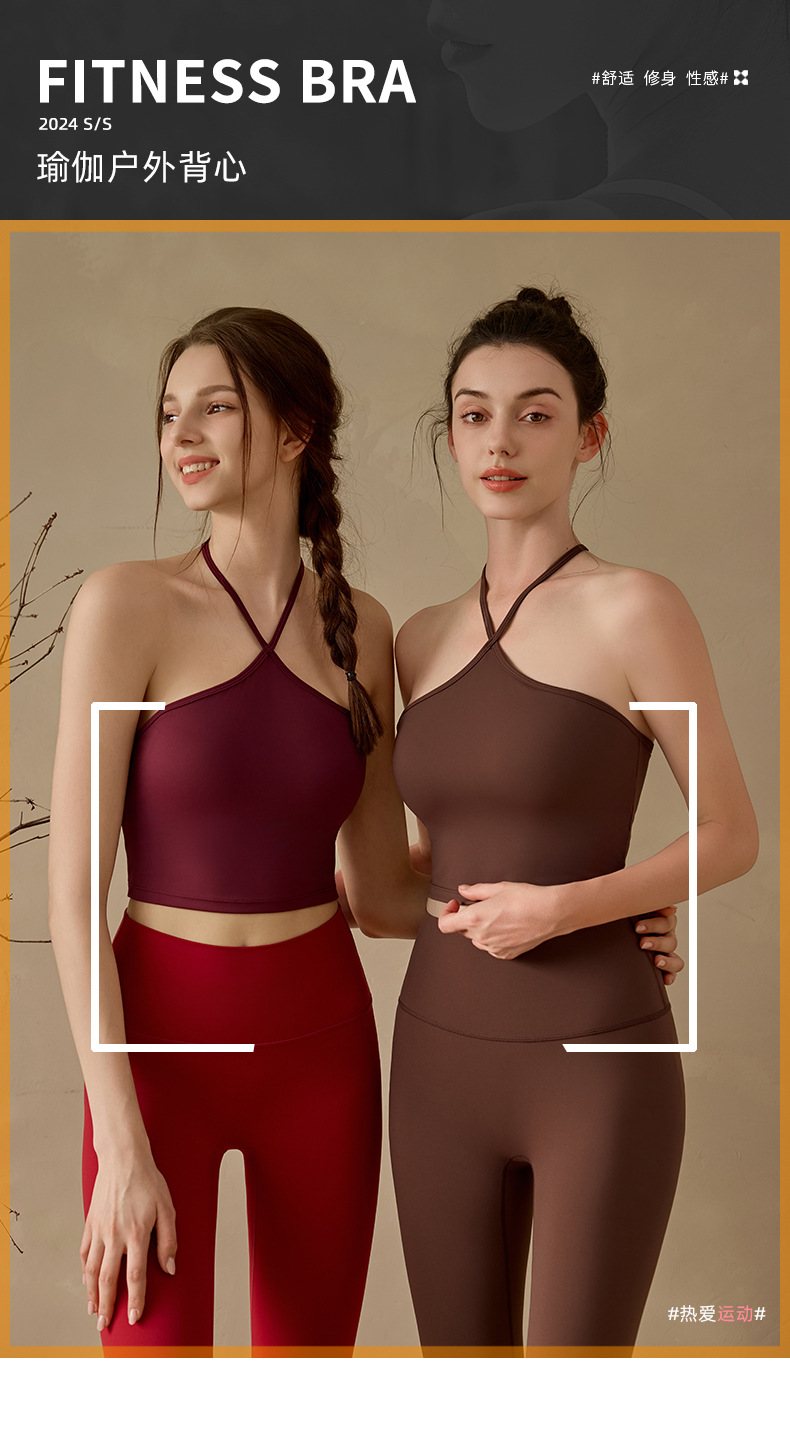 고정된 가슴 패드가 있는 중국식 슬링 홀터넥 조끼 요가 탑, 조절 가능한 스포츠 피트니스 필라테스 브라스토어 가기