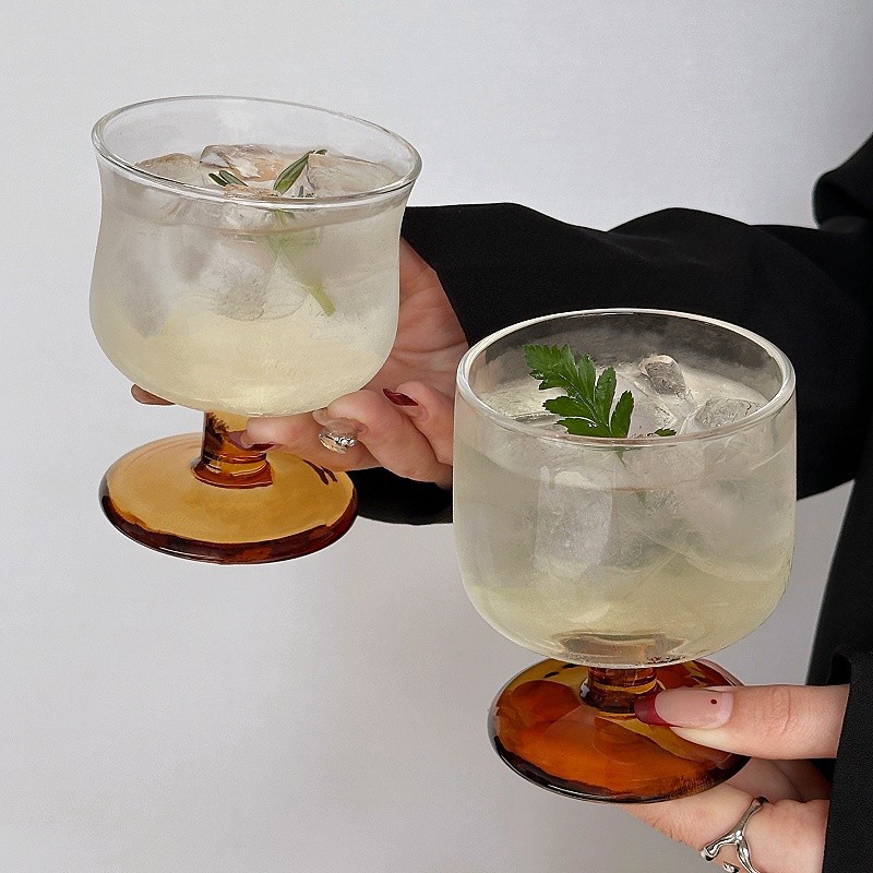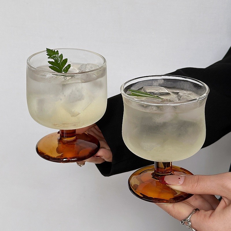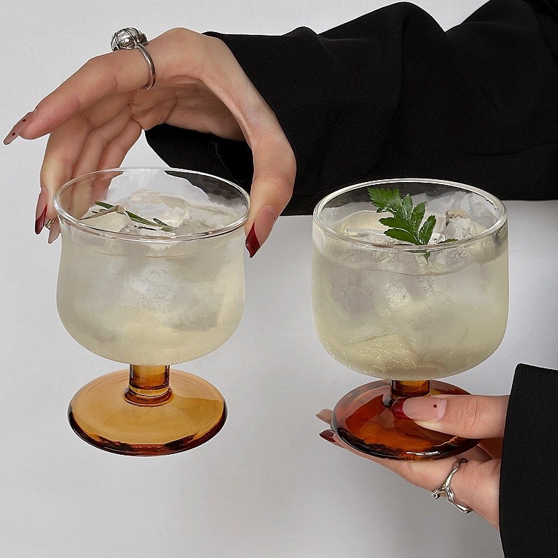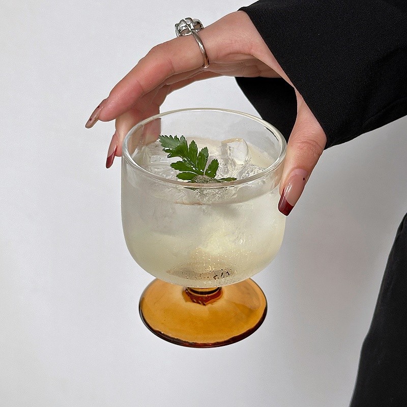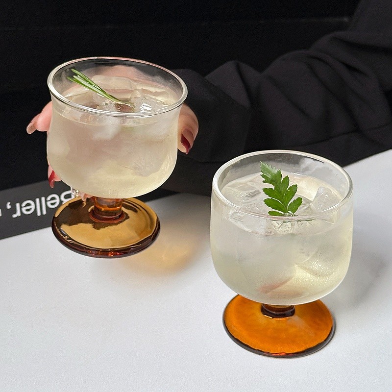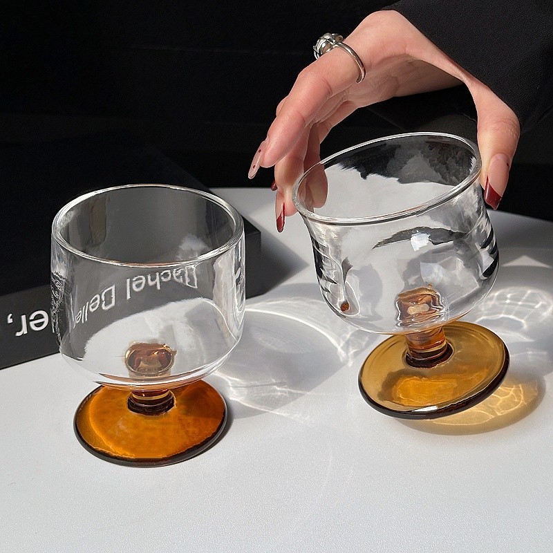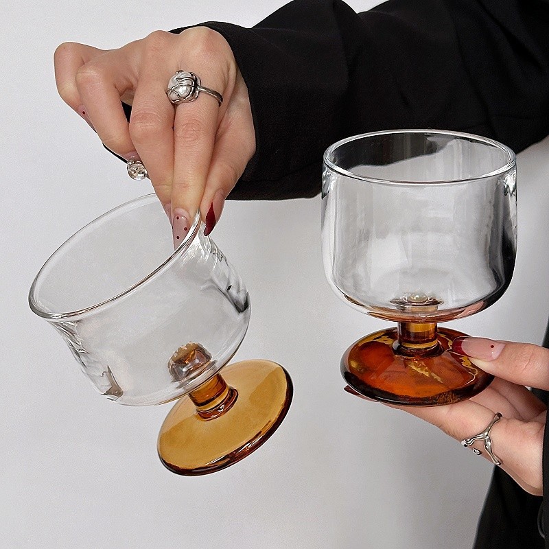 ~圆墩矮脚玻璃杯氛围感香槟杯葡萄酒杯果汁饮料杯水杯 敲好看 集美们 推荐入手~