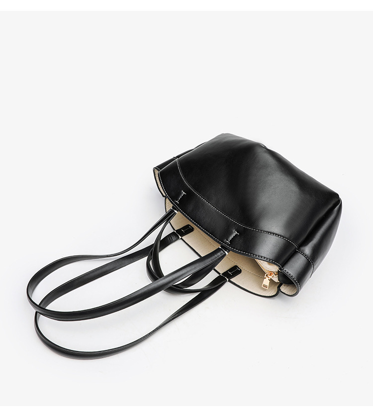 购物包。设有提手及肩带。可拆内袋以拉链闭合。
