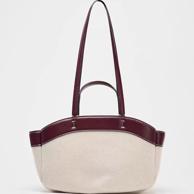 ZA 홈 대용량 어깨 토트 백 여성 2025 년 봄과 여름 새로운 크림슨 통근 쇼핑백 핸드 백