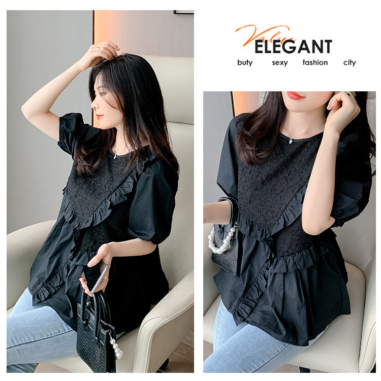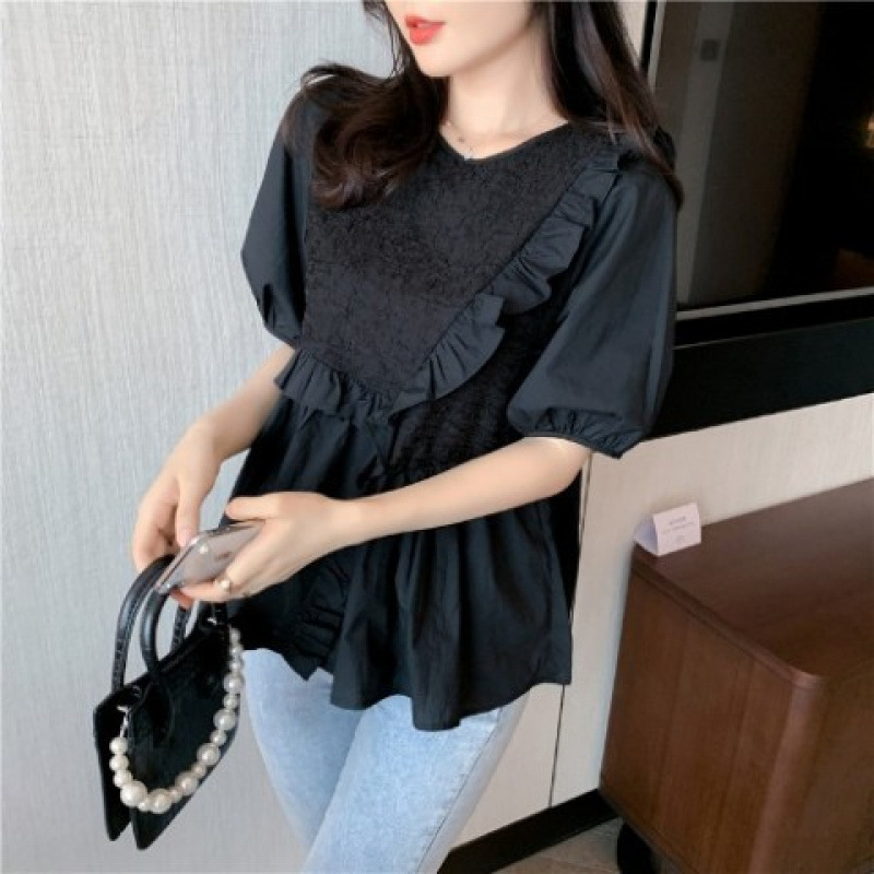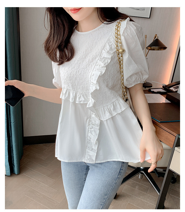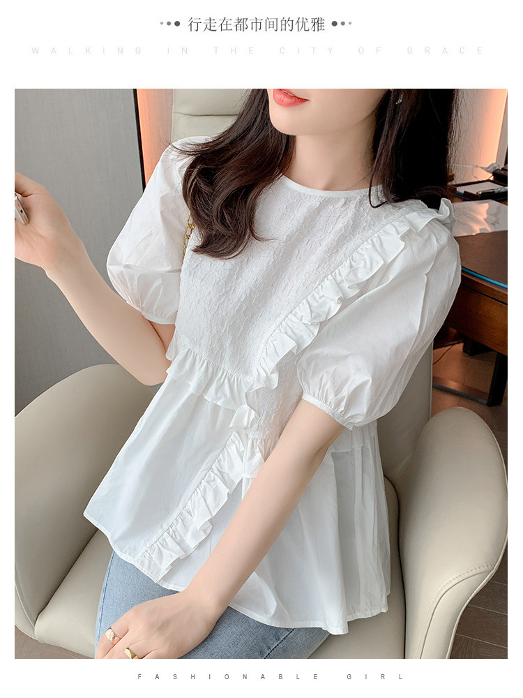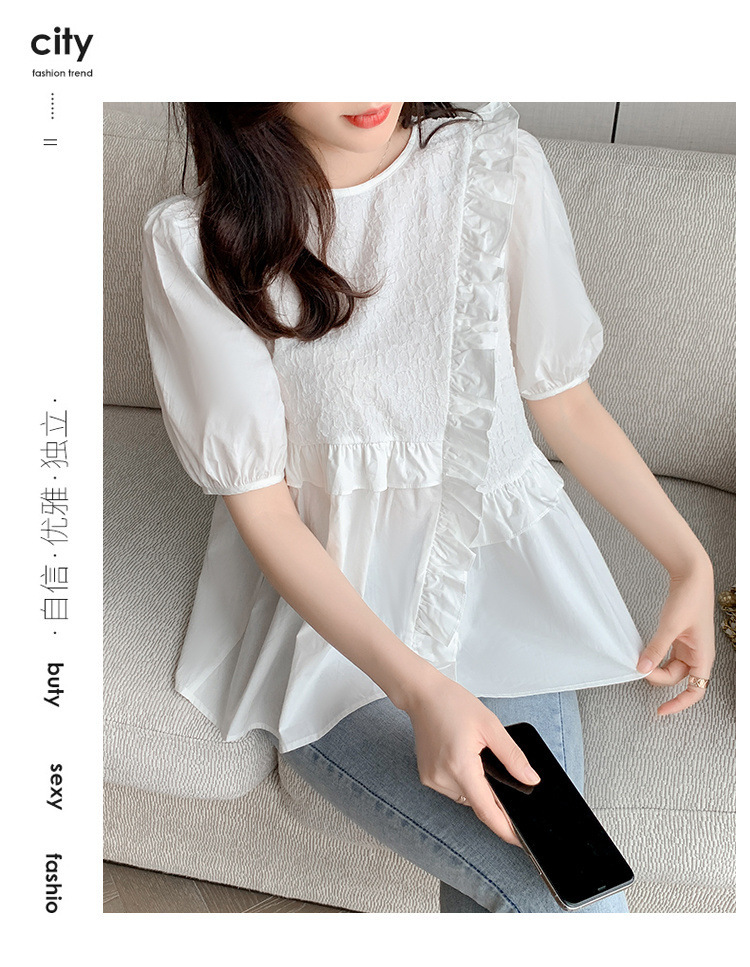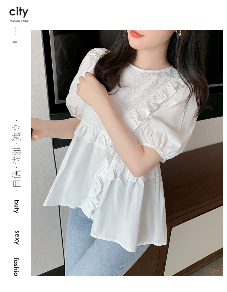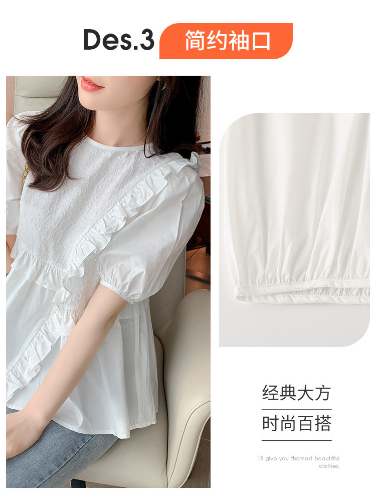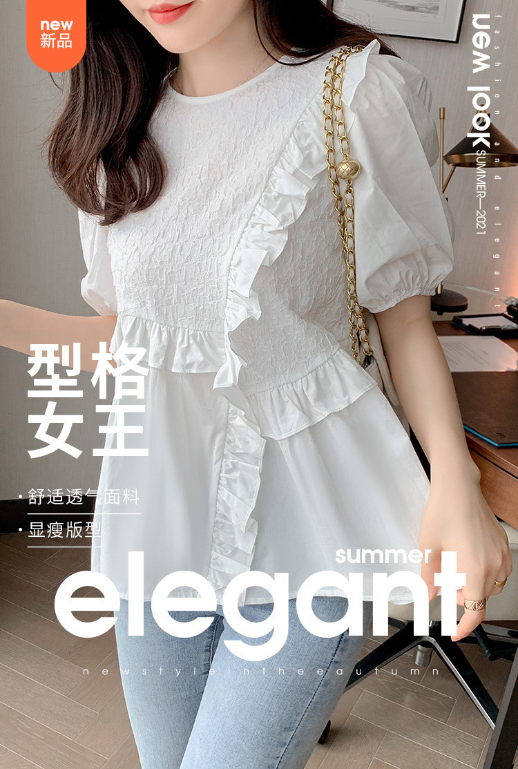 반팔 여성 디자인, 니치, 가볍고 성숙함, 다재다능함, 연령 감소, 아름답고 스타일리시한 셔츠, 슬리밍 퍼프 슬리브 쉬폰 탑