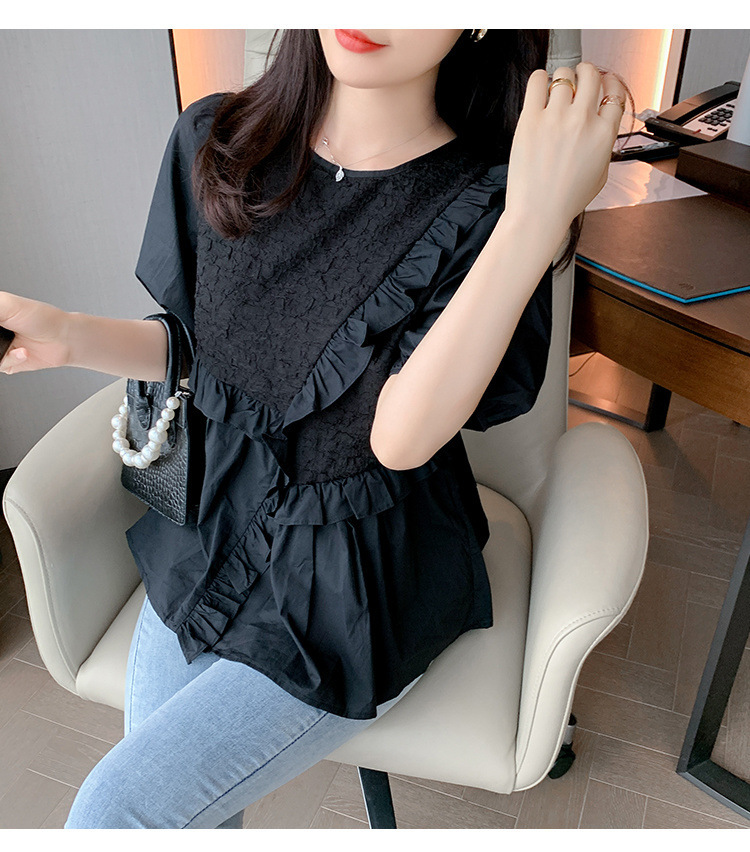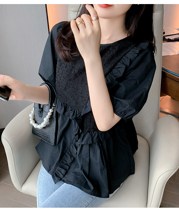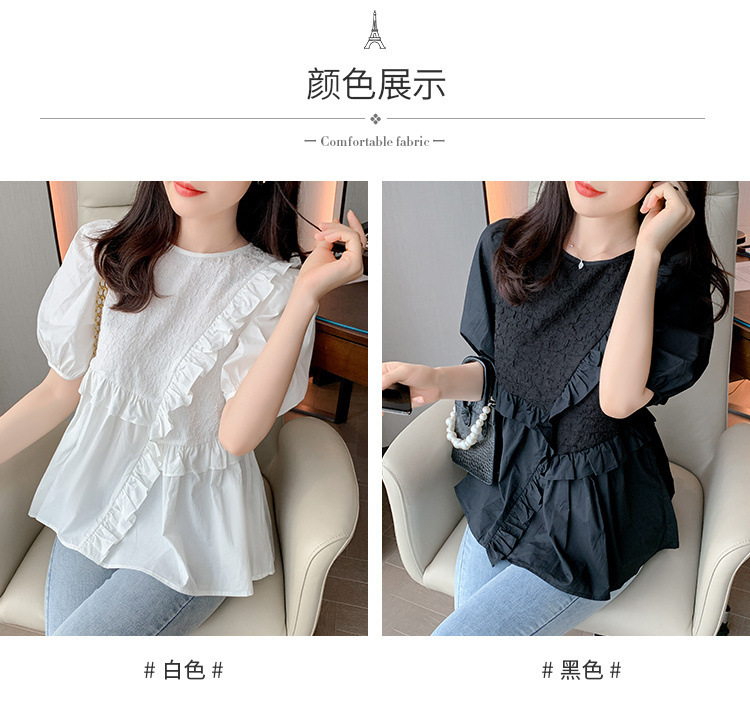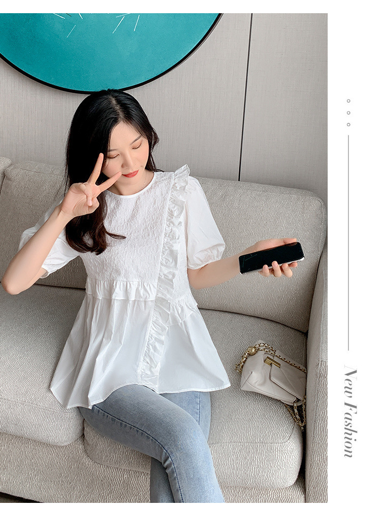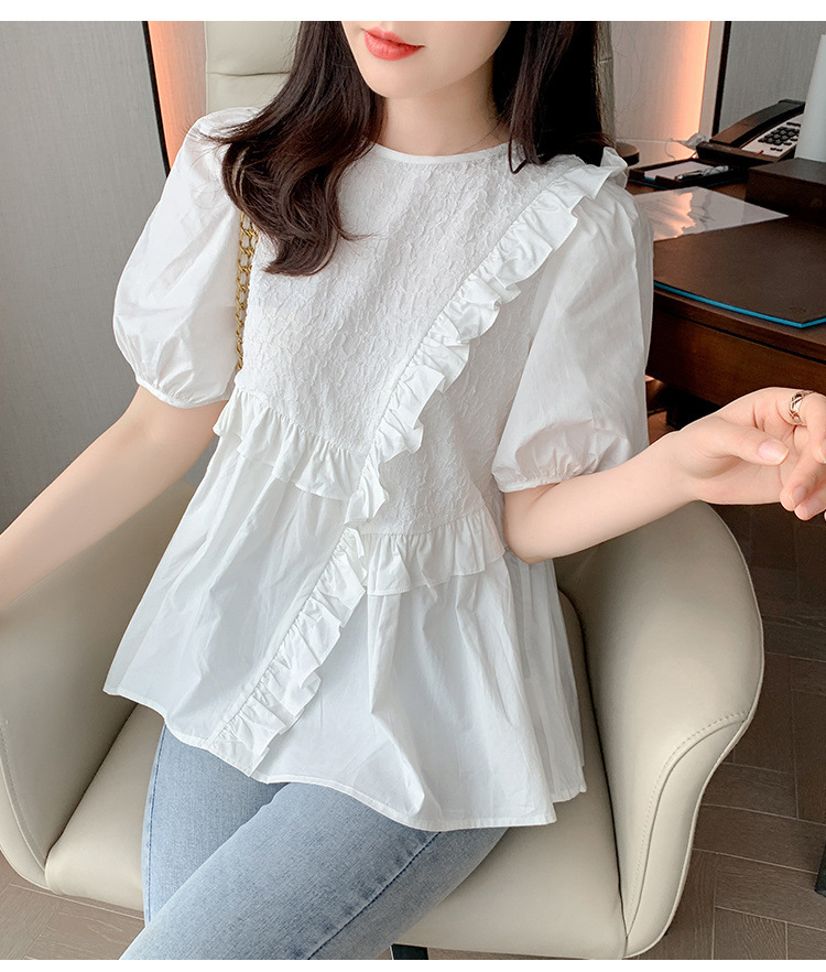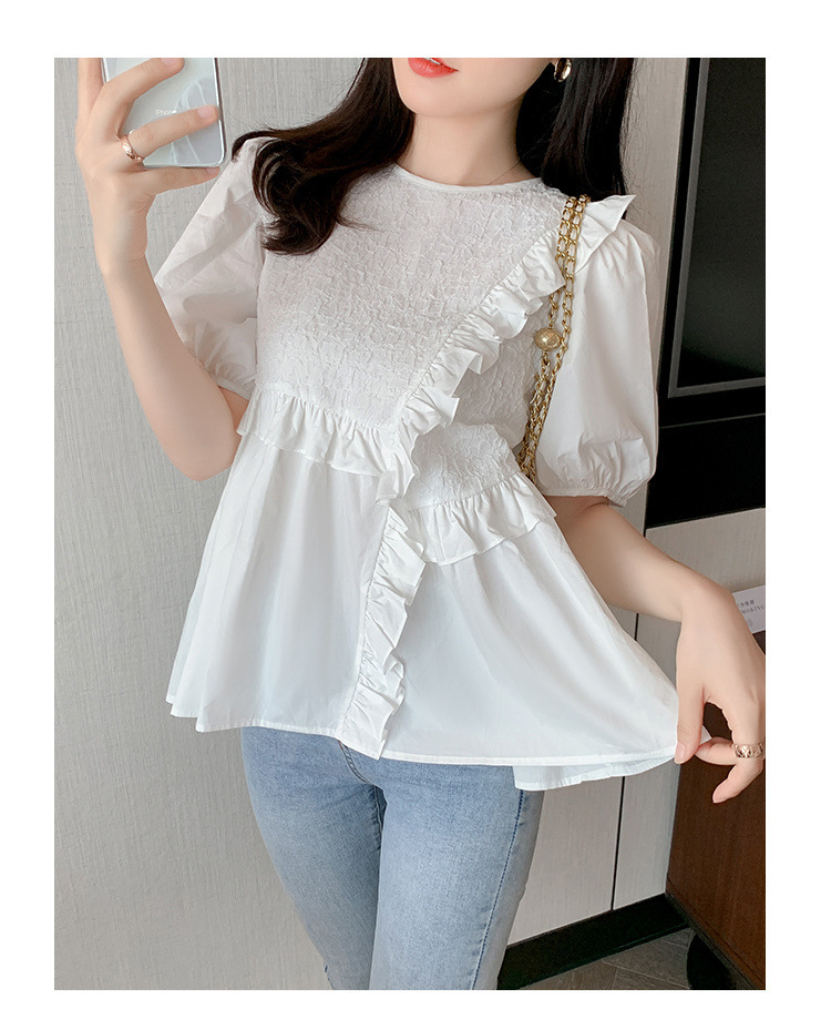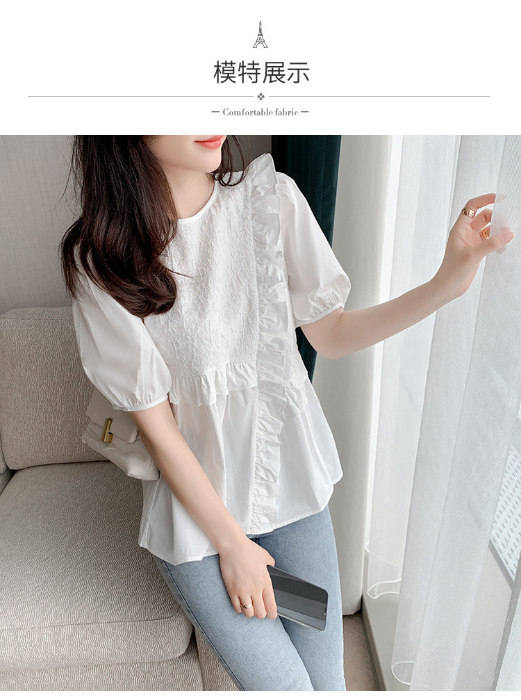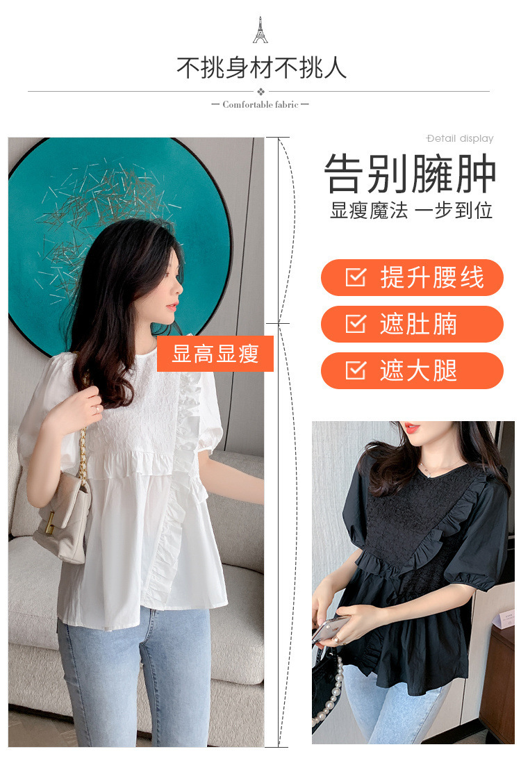 반팔 여성 디자인, 니치, 가볍고 성숙함, 다재다능함, 연령 감소, 아름답고 스타일리시한 셔츠, 슬리밍 퍼프 슬리브 쉬폰 탑
