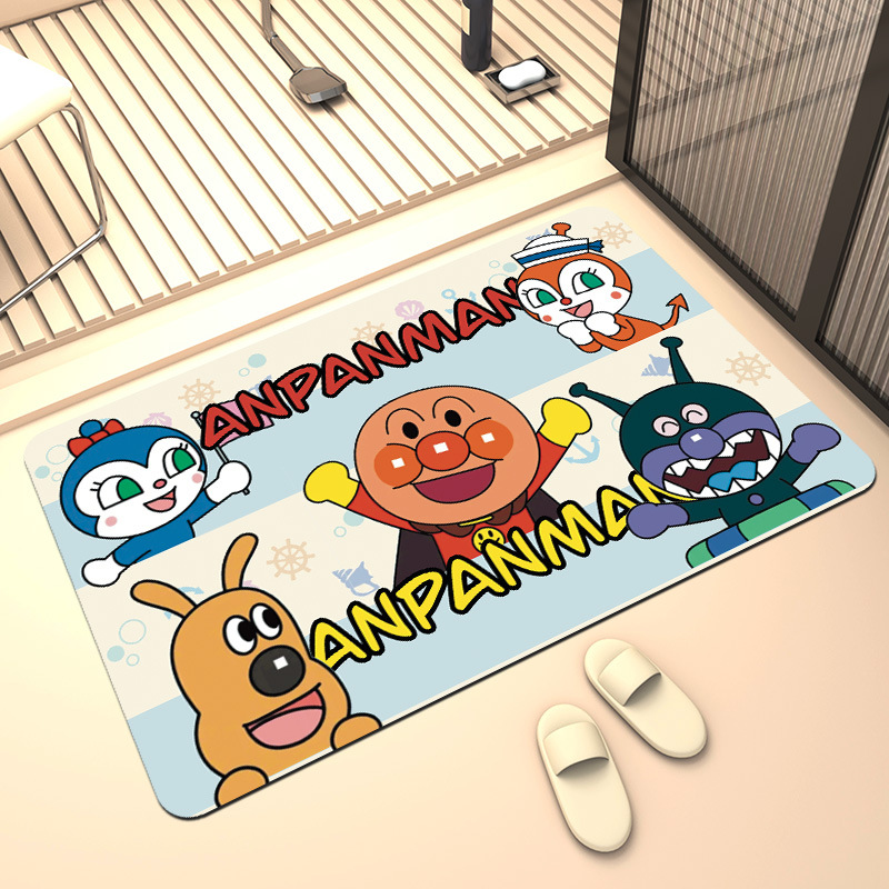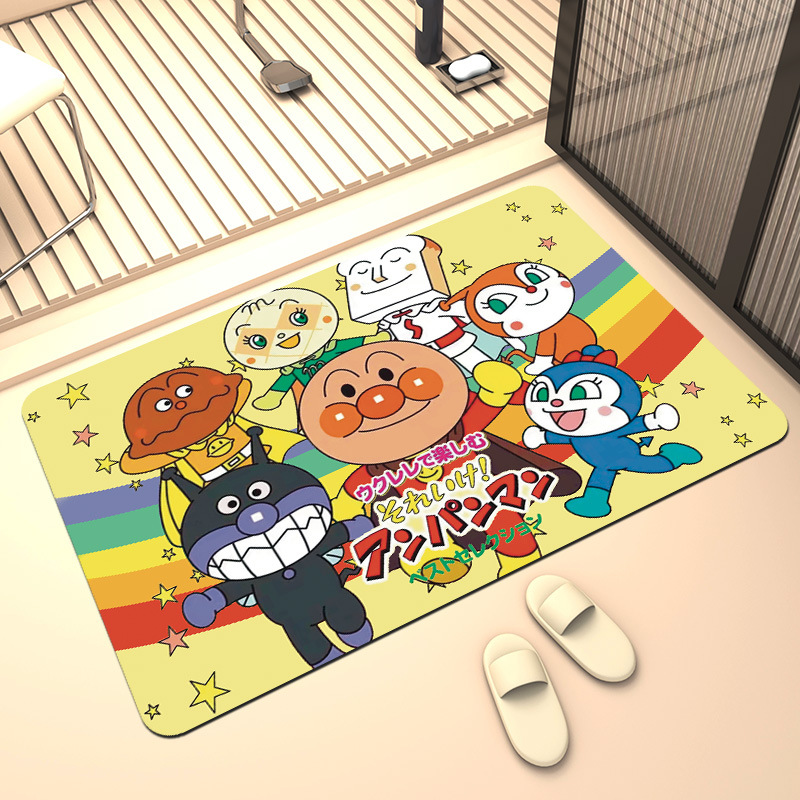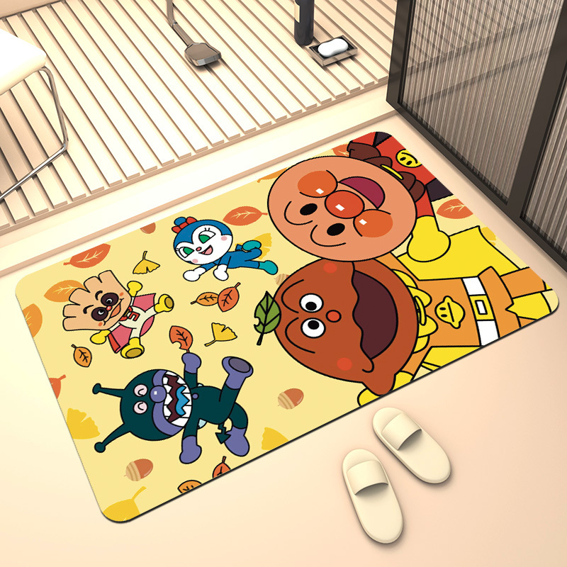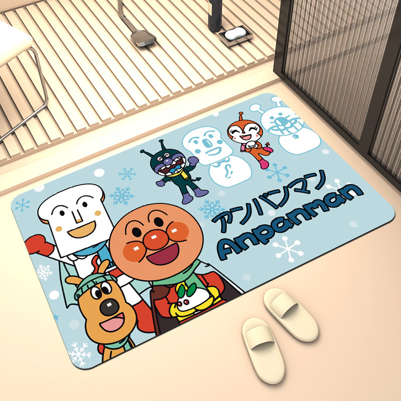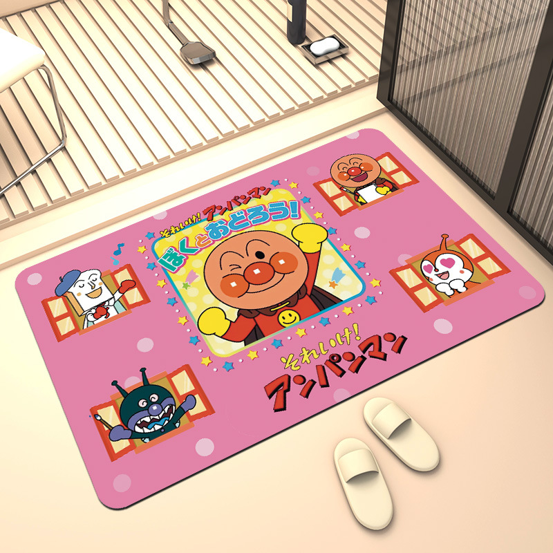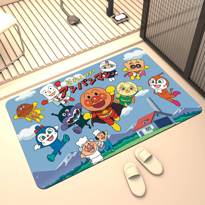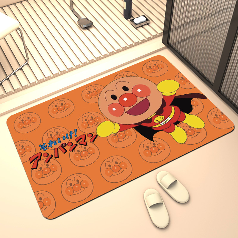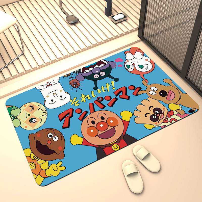 국경 간 TEMU 만화 호빵맨 욕실 바닥 매트, 욕실 흡수성 발 매트, 화장실 문 얼룩 방지 발 매트
