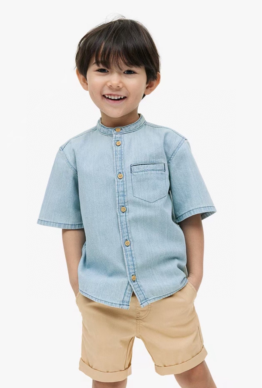 今年最新款,水洗牛仔衬衣配梭织短裤