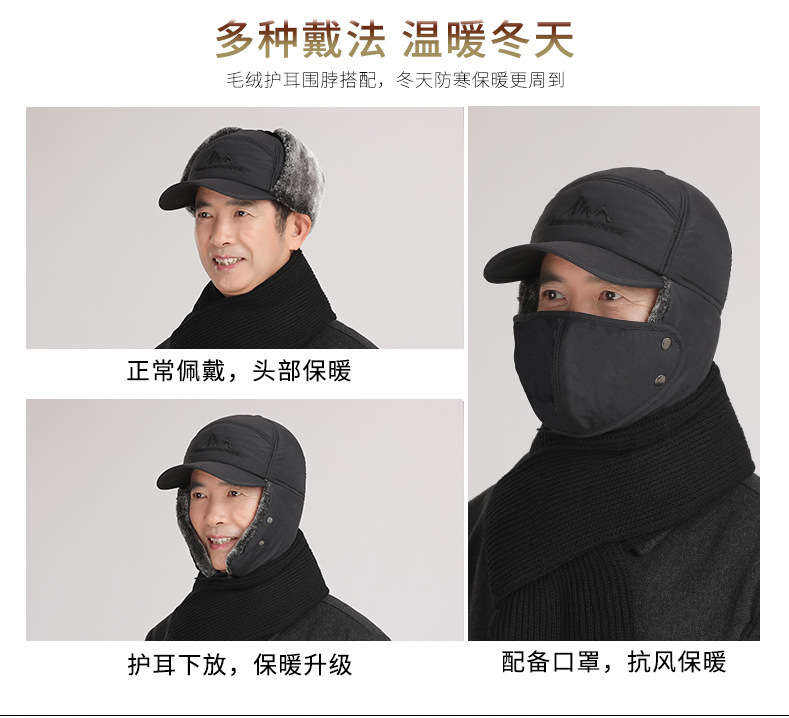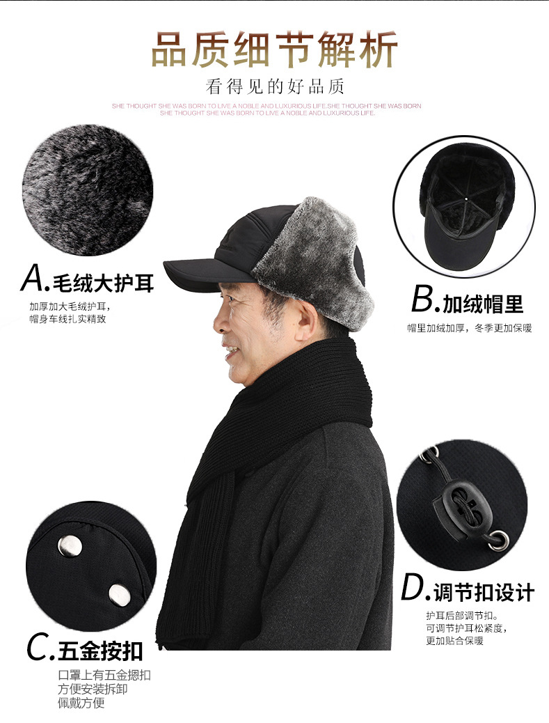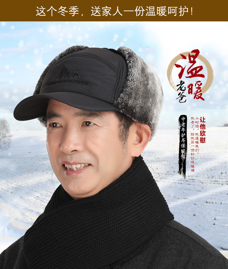 중년 및 노인 남성 레이펑 모자 겨울 아빠 따뜻한 사이클링 방풍 및 방한 모자 플러스 벨벳 두꺼운 귀 보호 동북면 모자스토어 가기