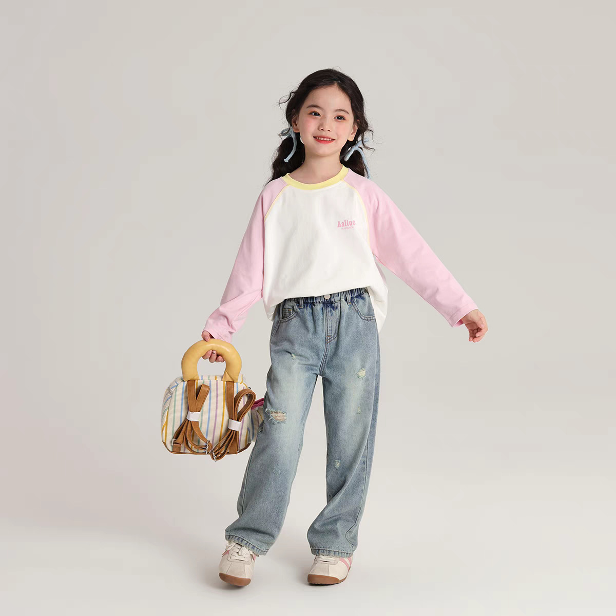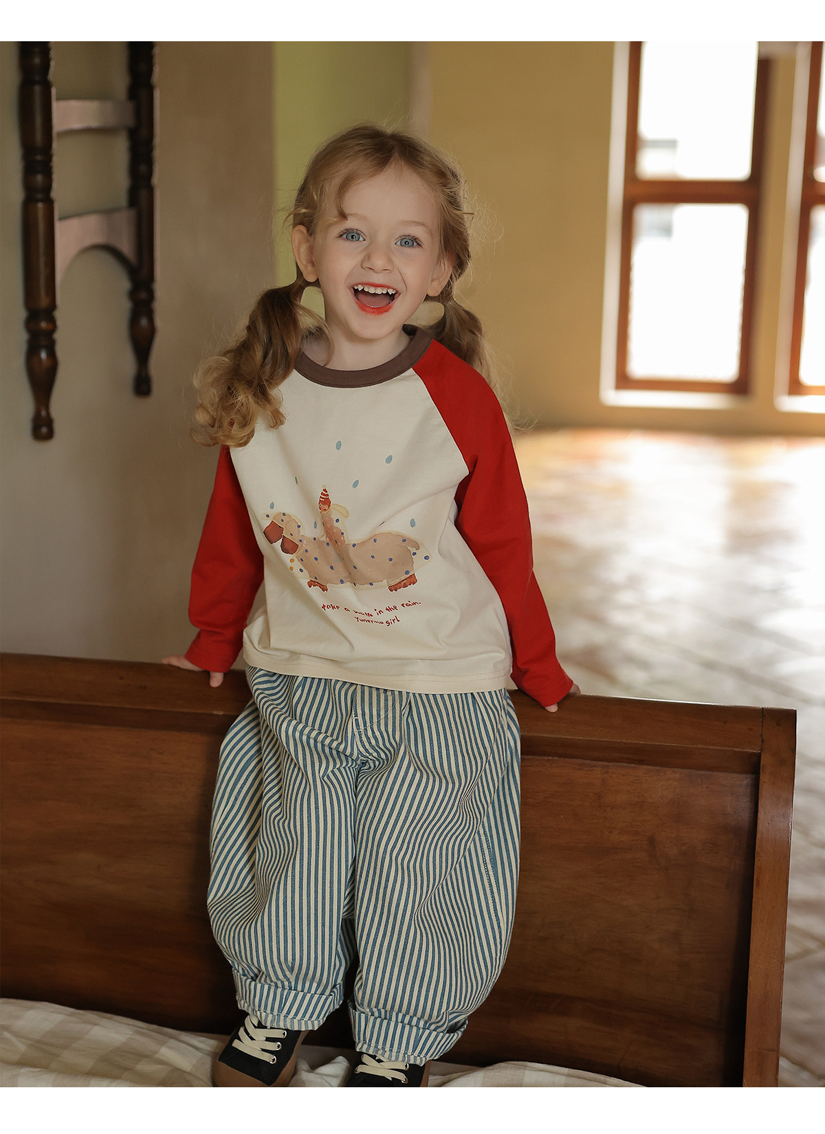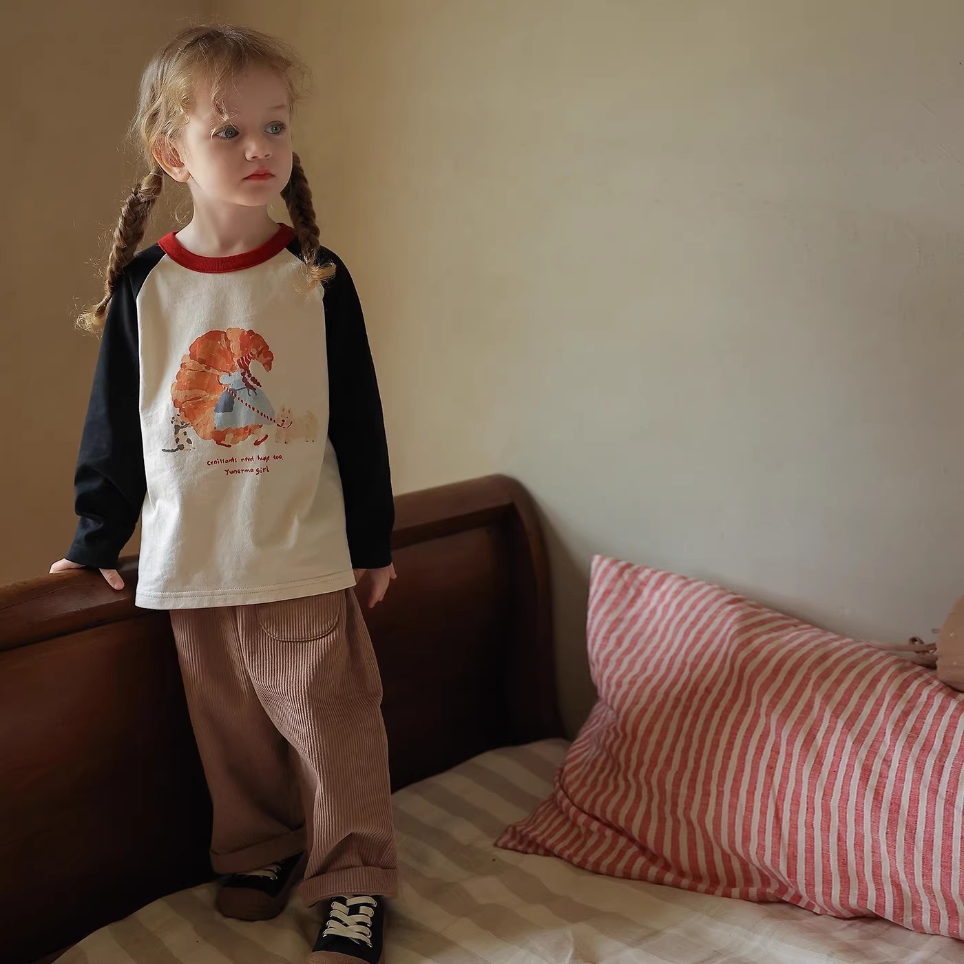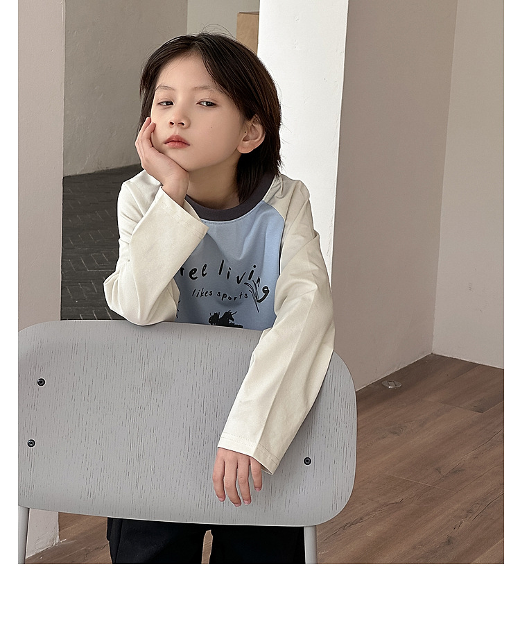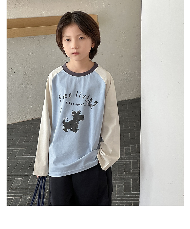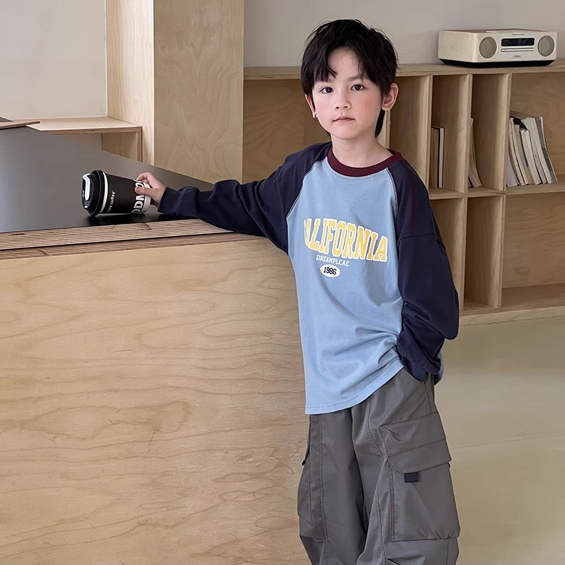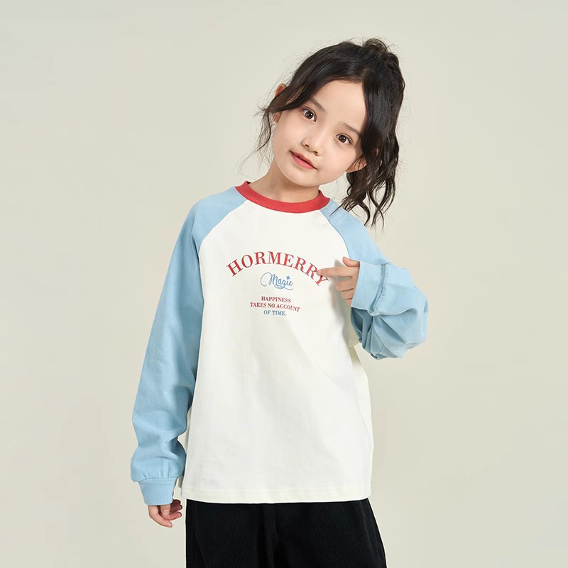 긴팔 어린이 티셔츠 2025 봄 새로운 스타일 소년과 소녀 만화 인쇄 라글란 슬리브 탑 아기 바닥 셔츠 의류스토어 가기