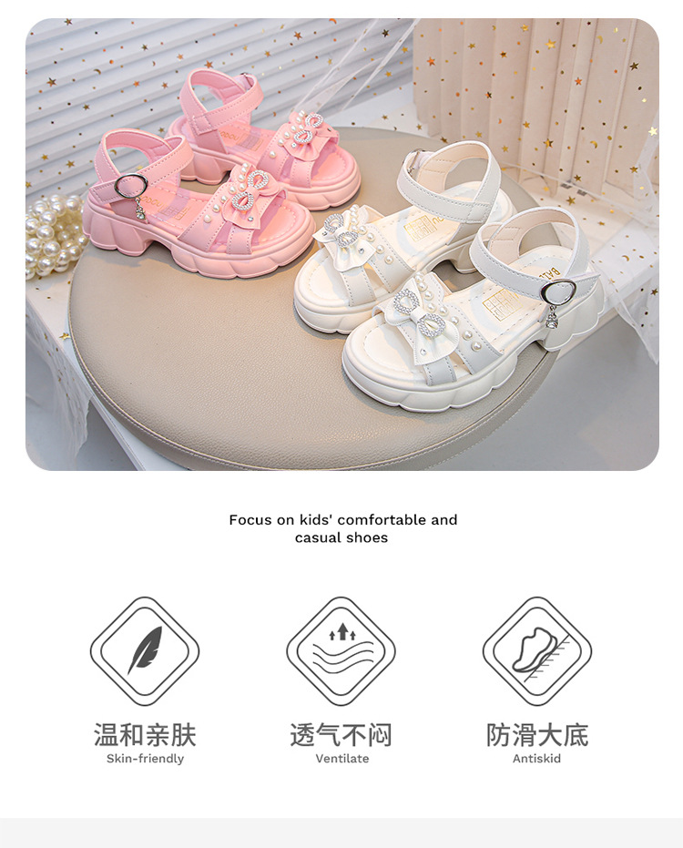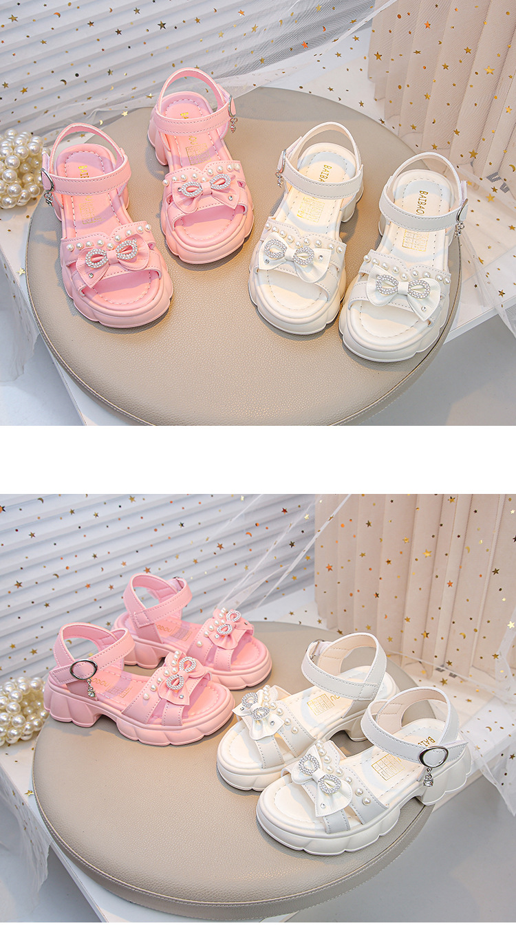 Bowknot 소녀 샌들 여름 중형 및 대형 어린이 아기 소녀 야외 해변 신발 도매 공주 샌들스토어 가기