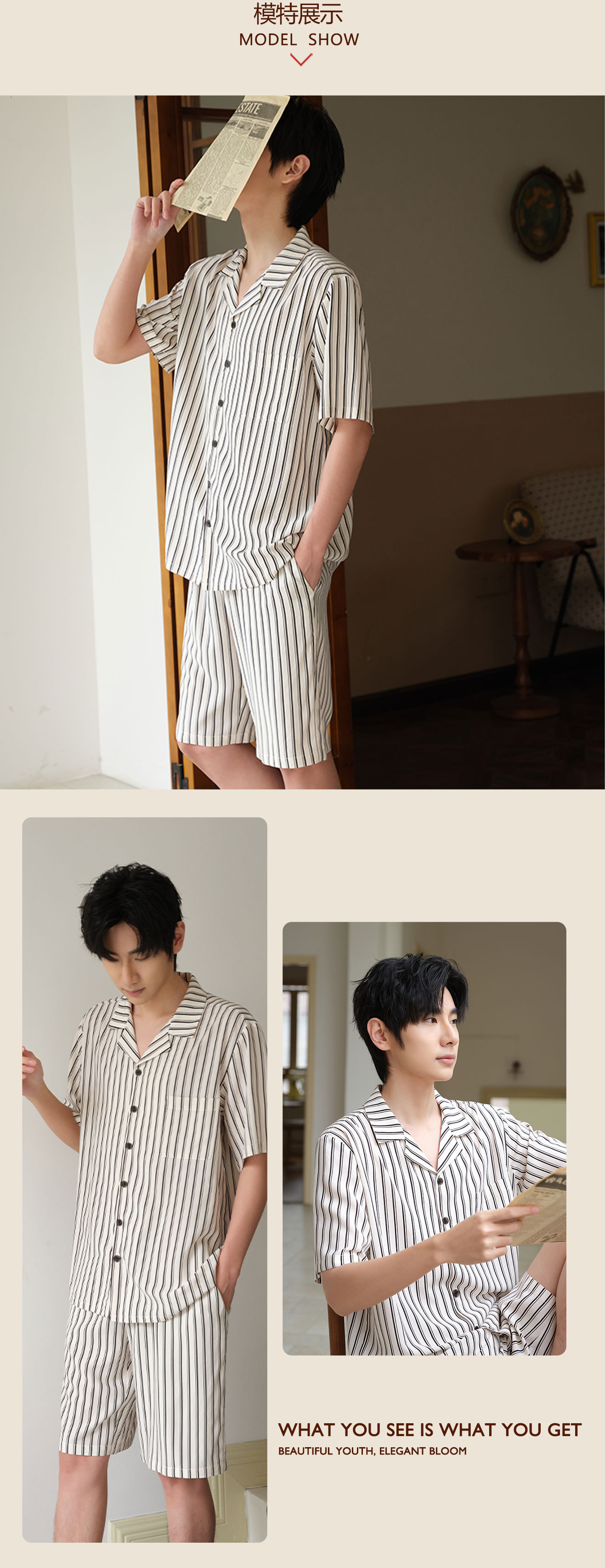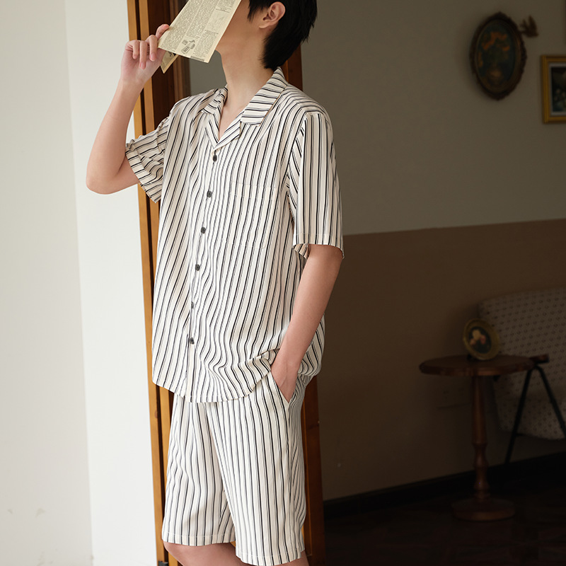 남성용 잠옷, 텐셀 리오셀 스트라이프 커플 가디건, 루즈하고 심플한 홈웨어 세트, 외부 착용 가능