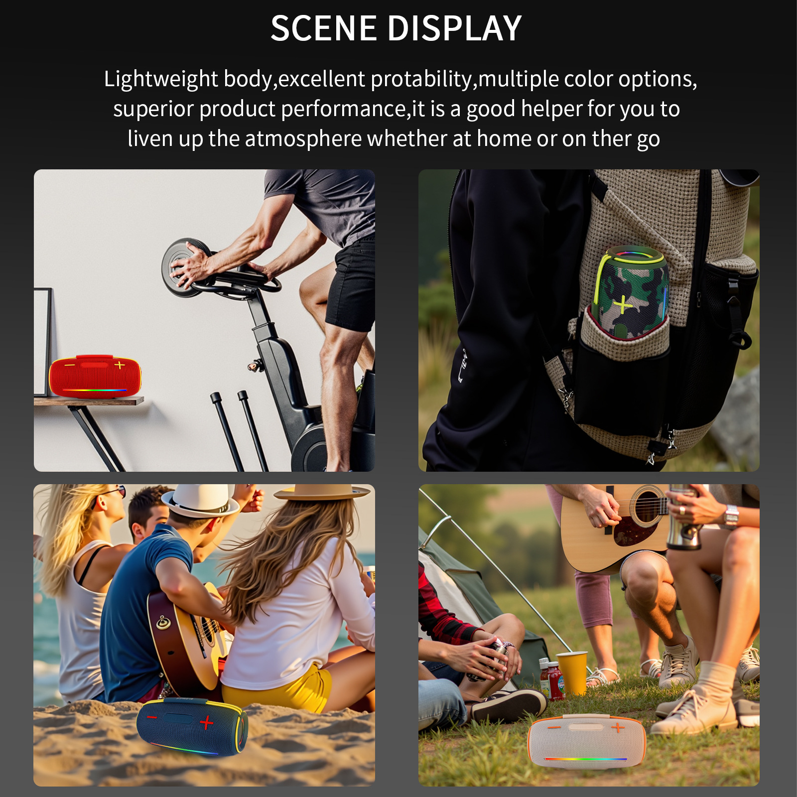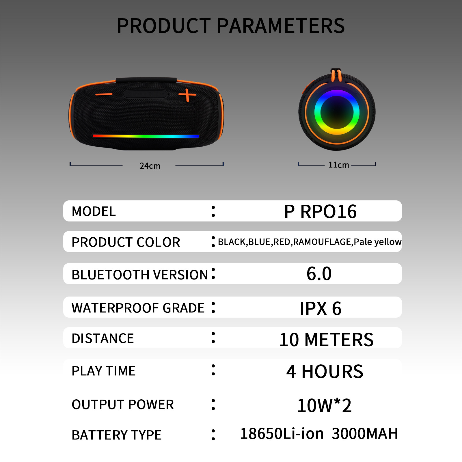 크로스보더 PPR016 블루투스 스피커 휴대용 천으로 덮인 고출력 RGB 야외 서브우퍼 무선 스피커