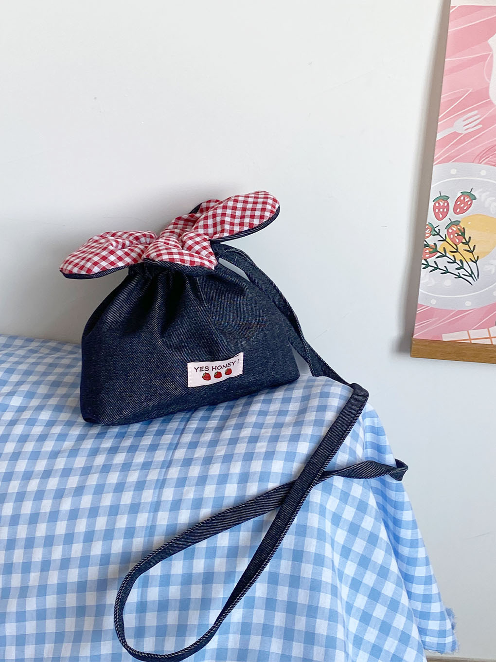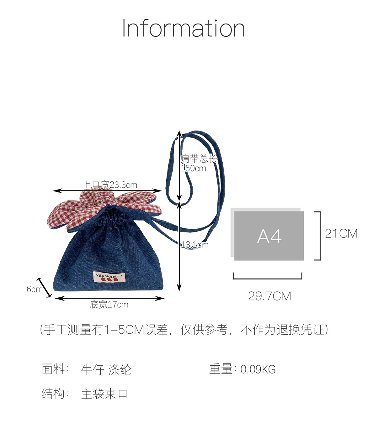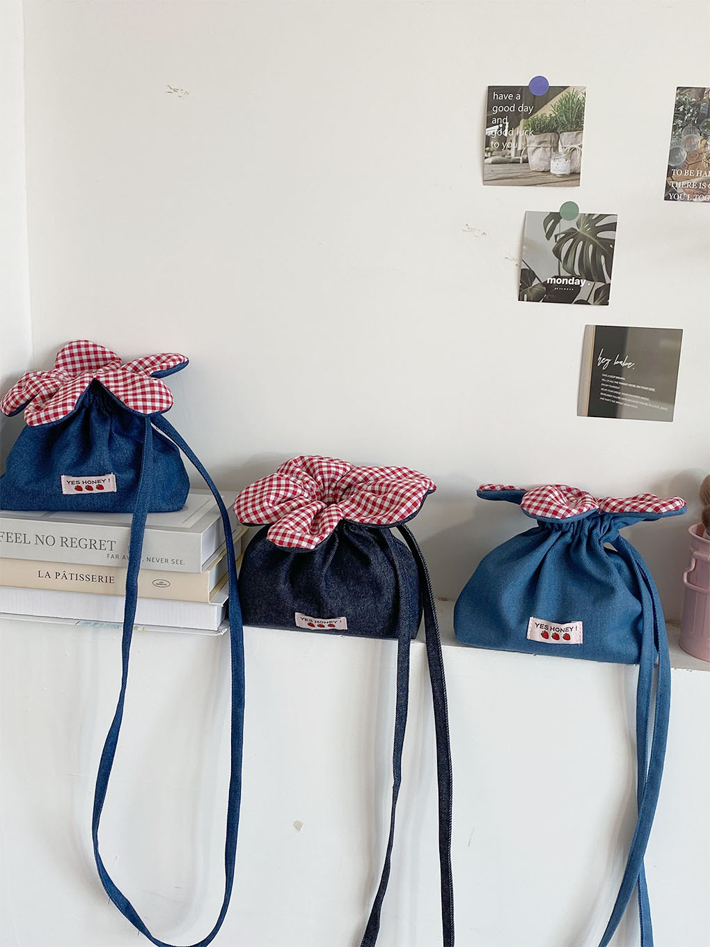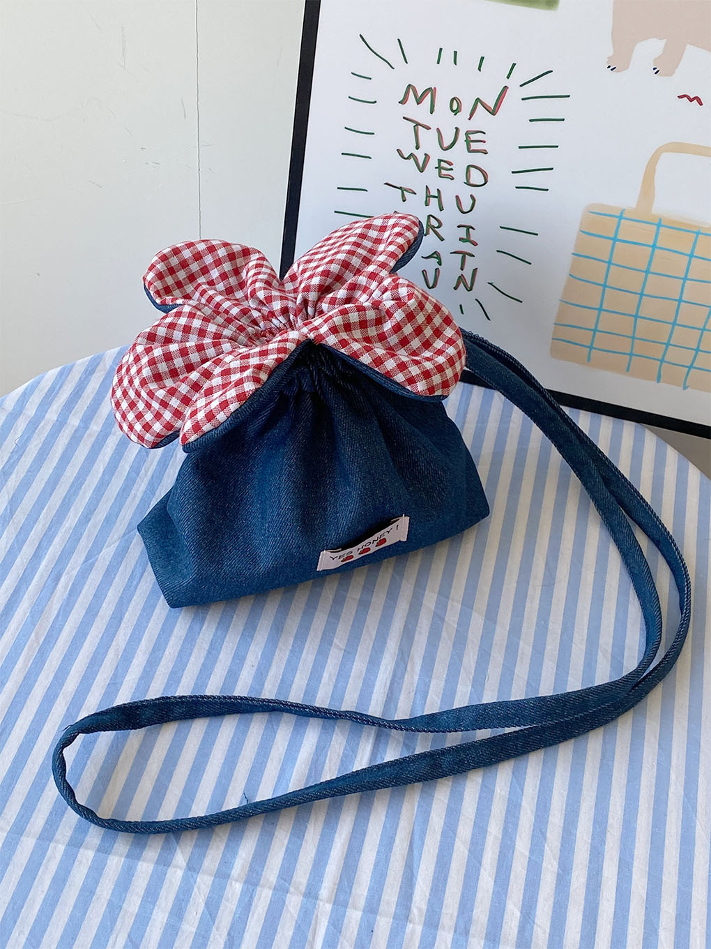 • 크로스바디 드로스트링 플라워 백 - 다크 블루 데님