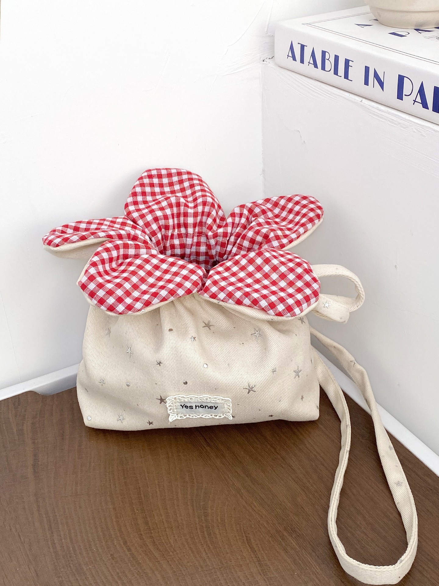 • 별별 캔버스 드로스트링 플라워 백 - 미색