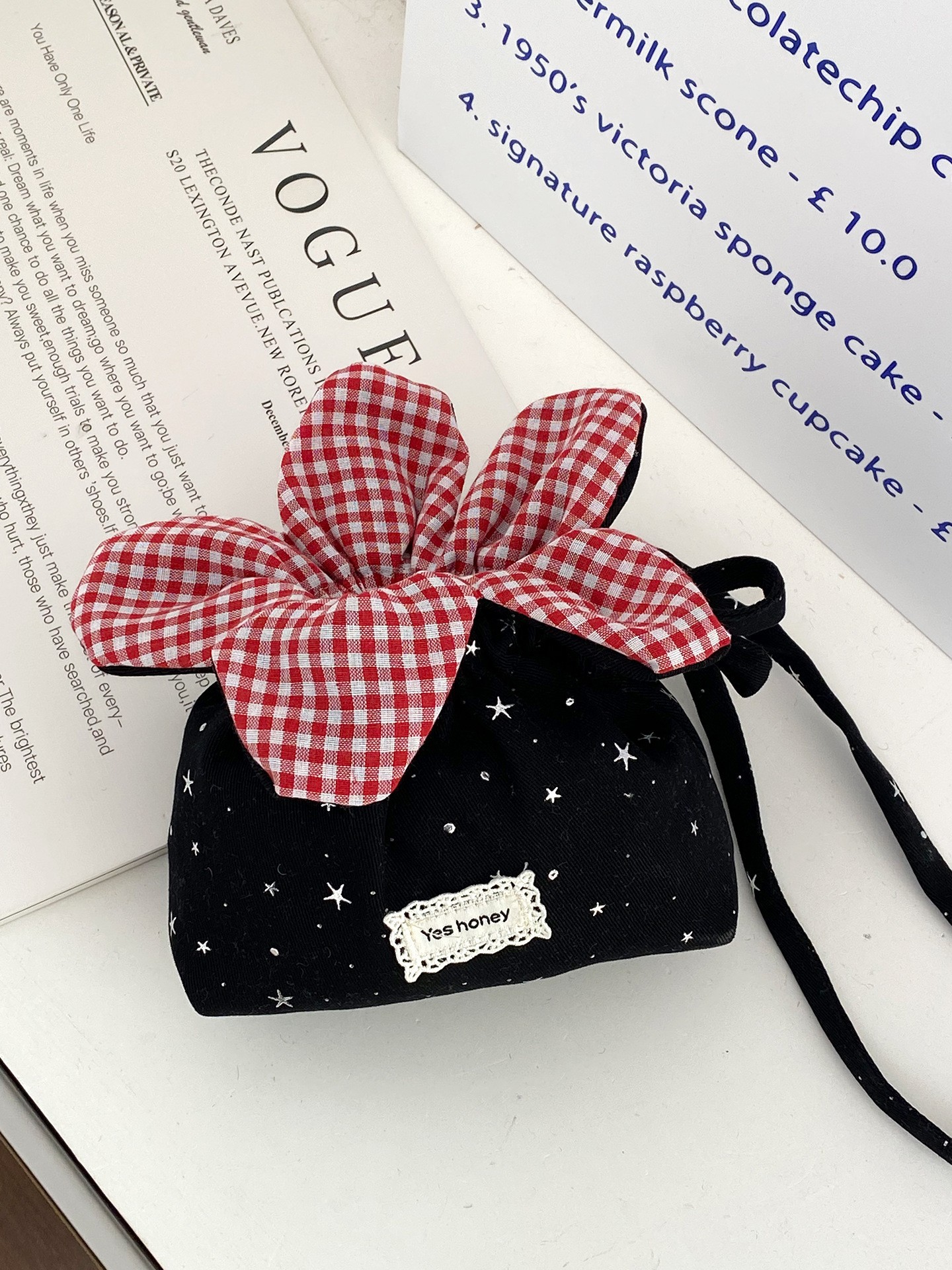 • 별별 캔버스 드로스트링 플라워 백 - 블랙