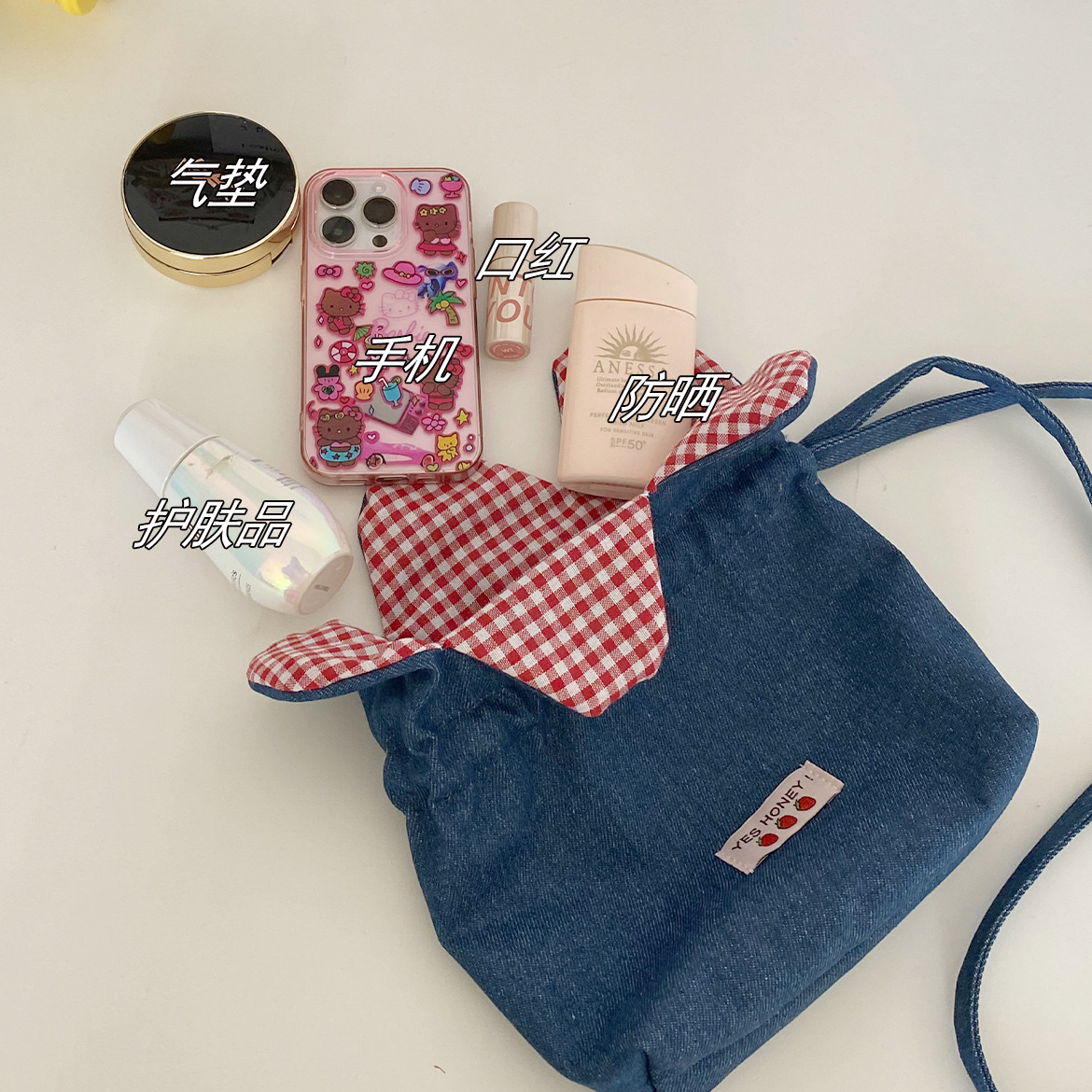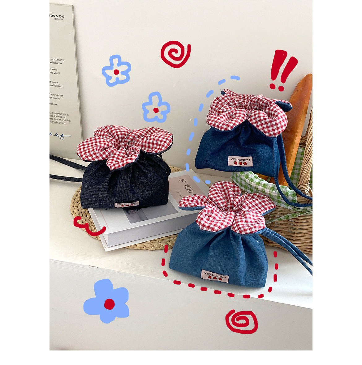 귀여운 데님 작은 꽃 크로스 바디 가방 한국 스타일 작은 신선한 스타일 어깨 크로스 바디 듀얼 사용 비트 가방 캐주얼 워킹 휴대 전화 가방