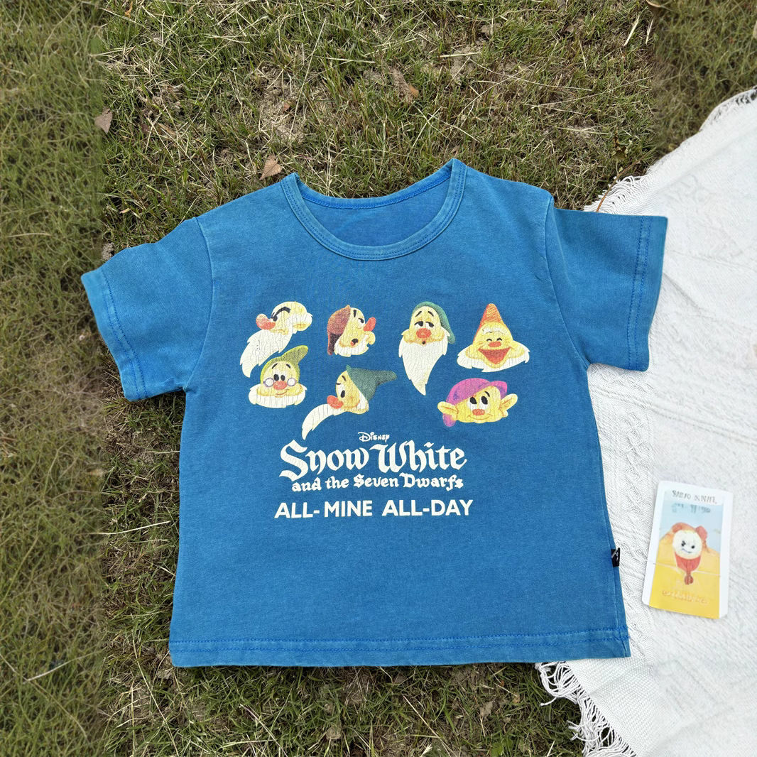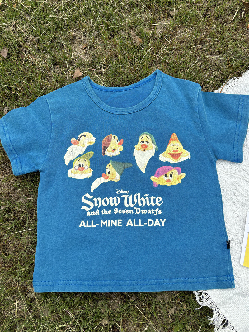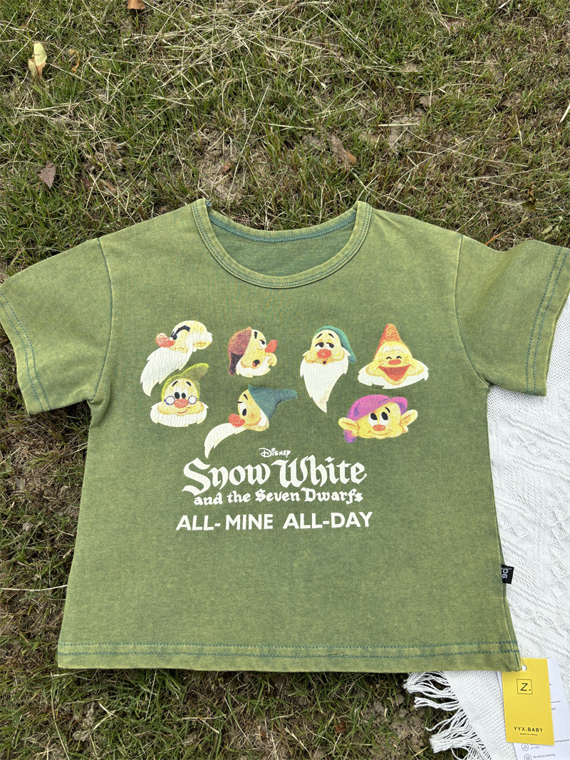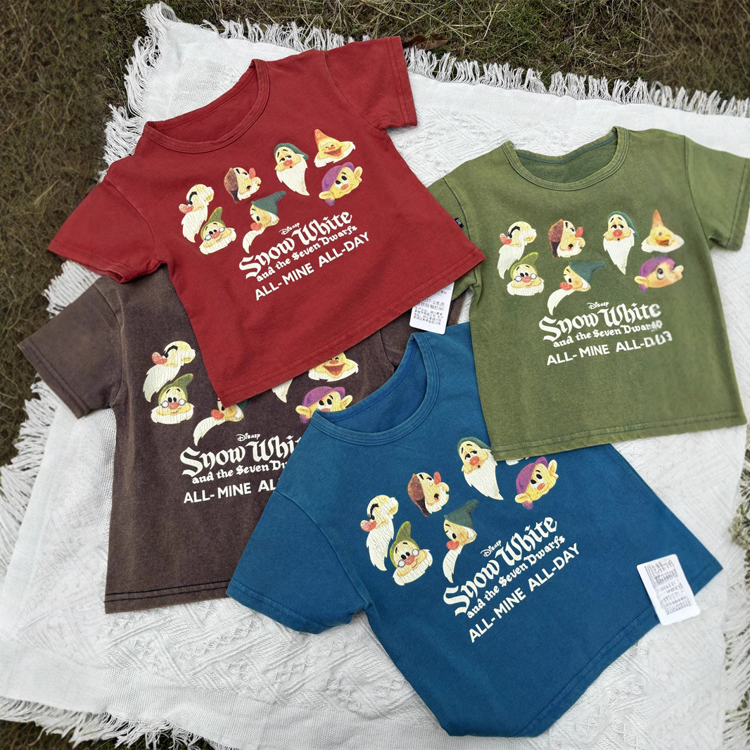 2025 새로운 어린이 티셔츠 난쟁이 반팔 오래된 복고풍 아동 의류 소년과 소녀 여름 의류스토어 가기