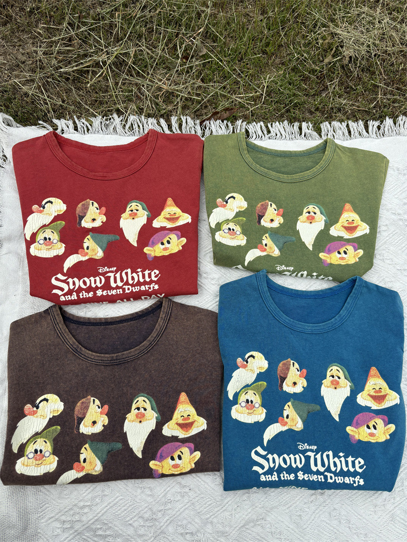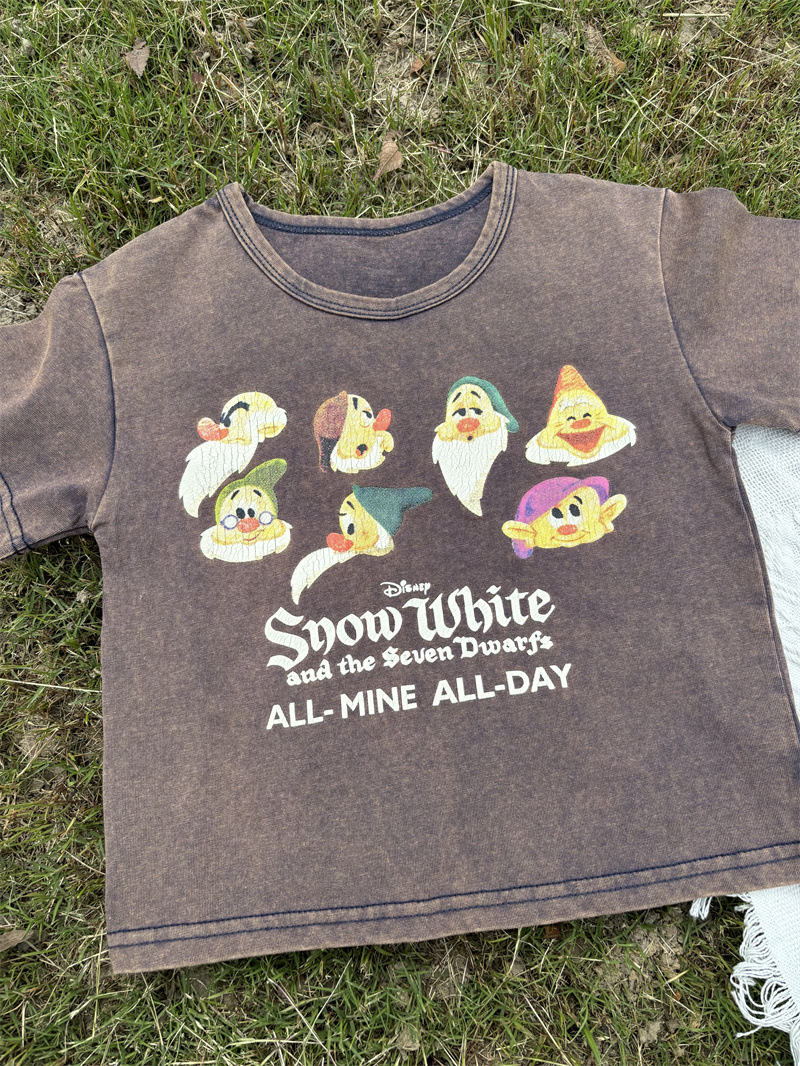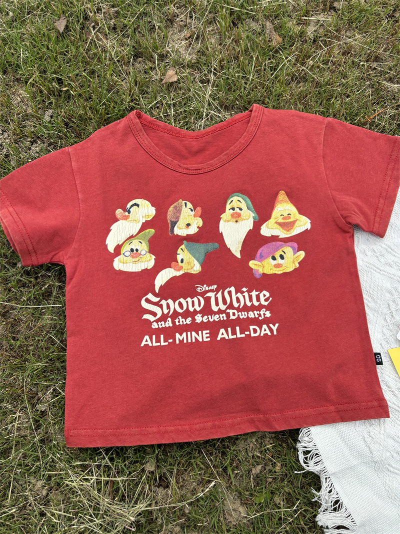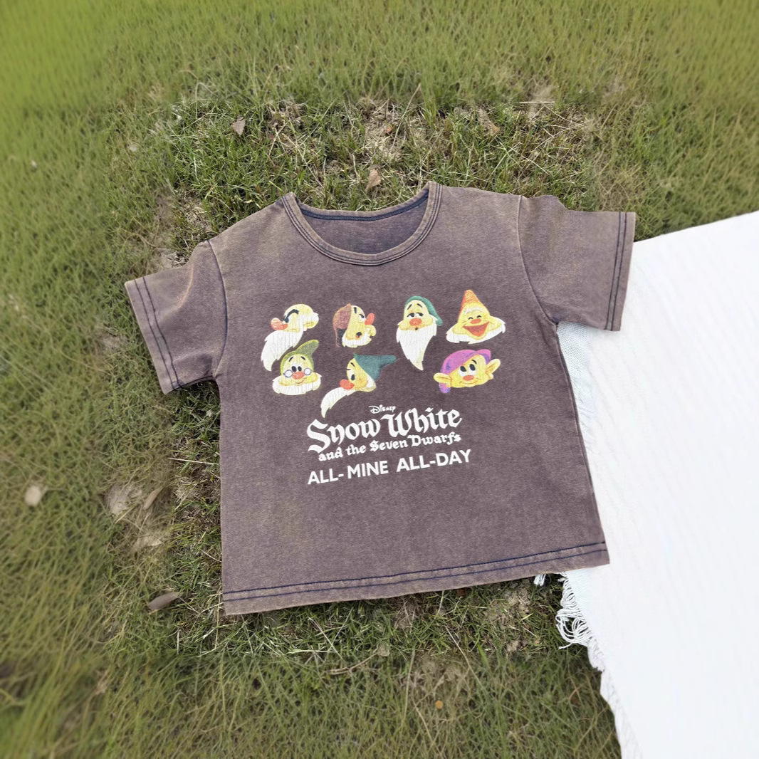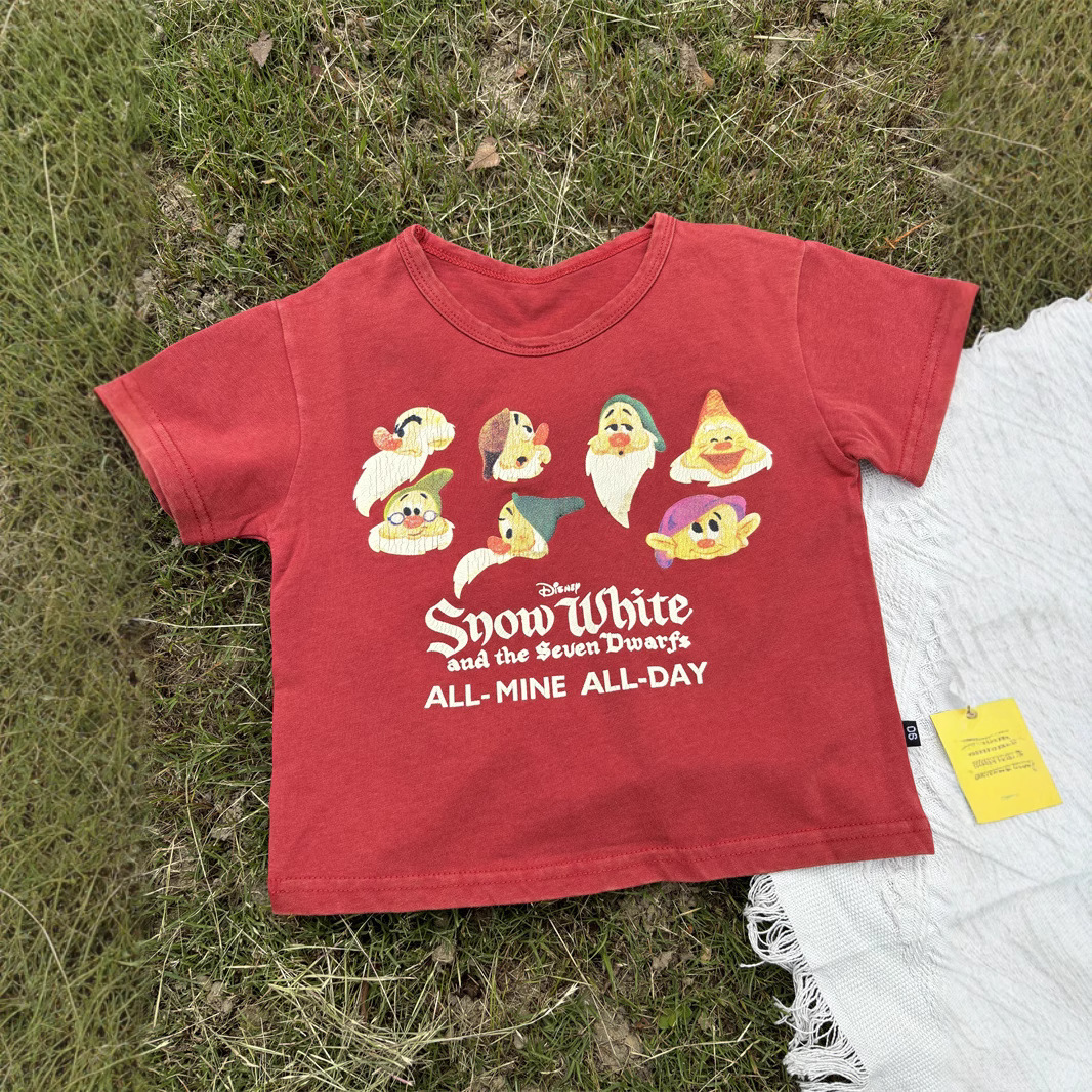 2025 새로운 어린이 티셔츠 난쟁이 반팔 오래된 복고풍 아동 의류 소년과 소녀 여름 의류스토어 가기