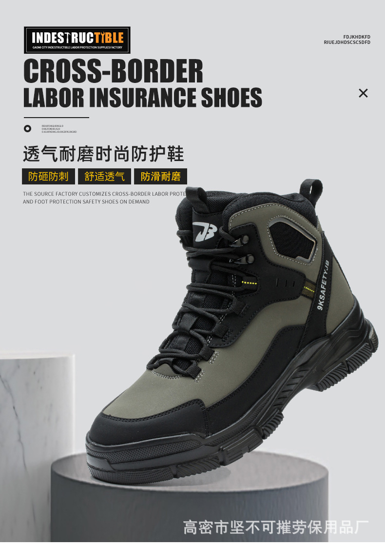 국경 간 하이탑 남성 노동 보호 신발, 충격 방지, 펑크 방지, 내마모성, 미끄럼 방지 안전 신발, 부드럽고 가볍고 장시간 서 있어도 피곤하지 않음