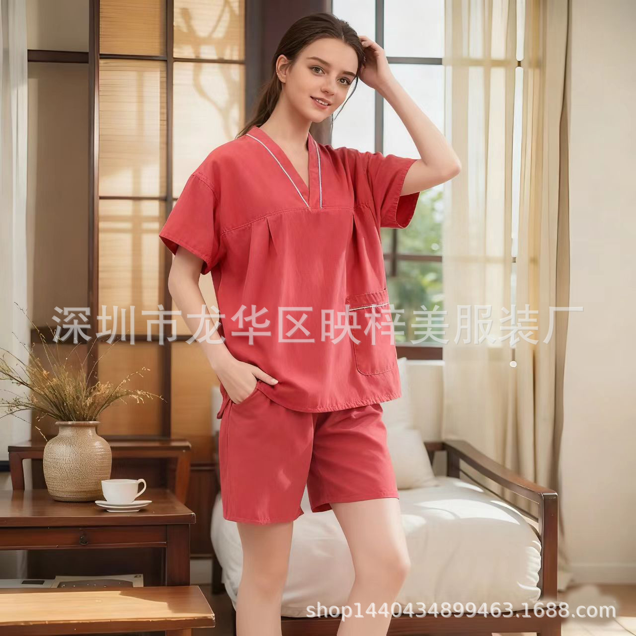 가성비 좋은 고급 린넨 원단, 화이트 치아 칼라, 신형 사우나복, 사우나복, 페디큐어 마사지 목욕가운, SPA 물리치료복스토어 가기