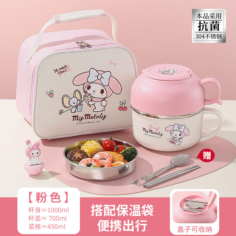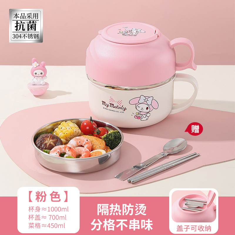 산리오 인스턴트 국수 그릇 밥 상자 304 스테인레스 스틸 절연 밥 그릇 사무실 직원이 자신의 그릇 학생 패스트 푸드 컵을 가져옵니다