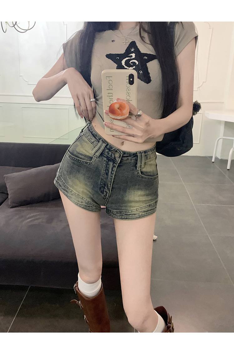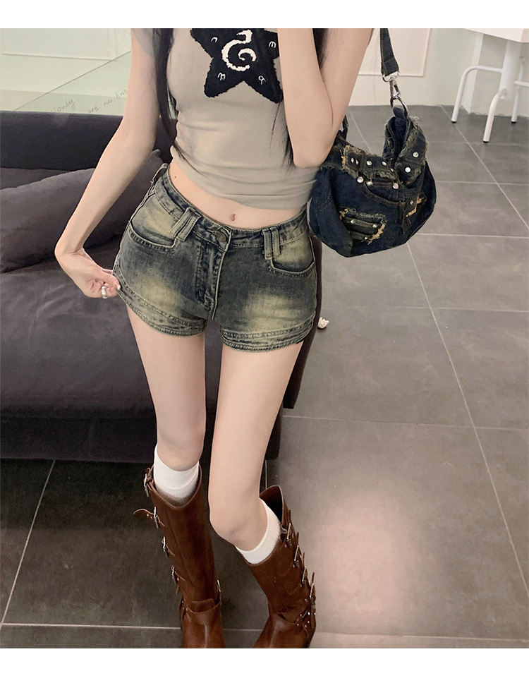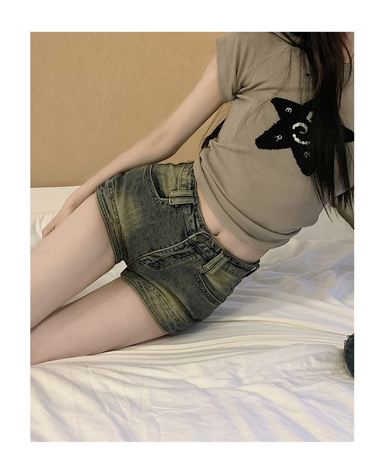 여성을위한 미국 핫 소녀 데님 반바지 2025 여름 새로운 스타일 편안하고 슬림하며 다재다능한 a 라인 슈퍼 짧은 핫 소녀 핫 바지스토어 가기