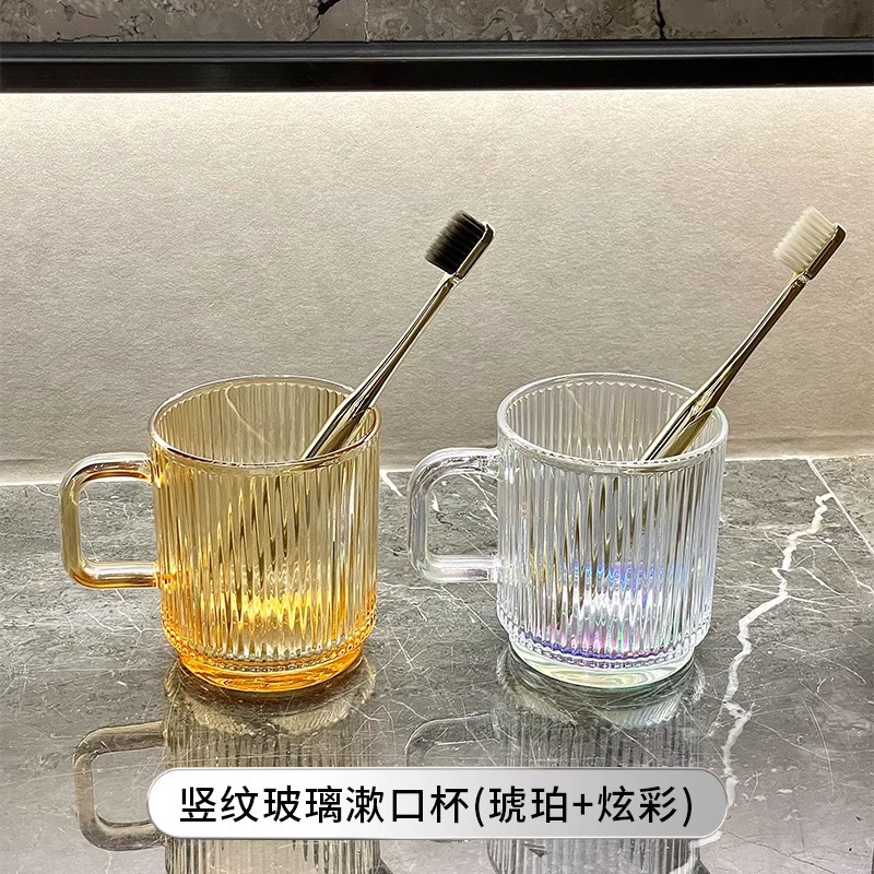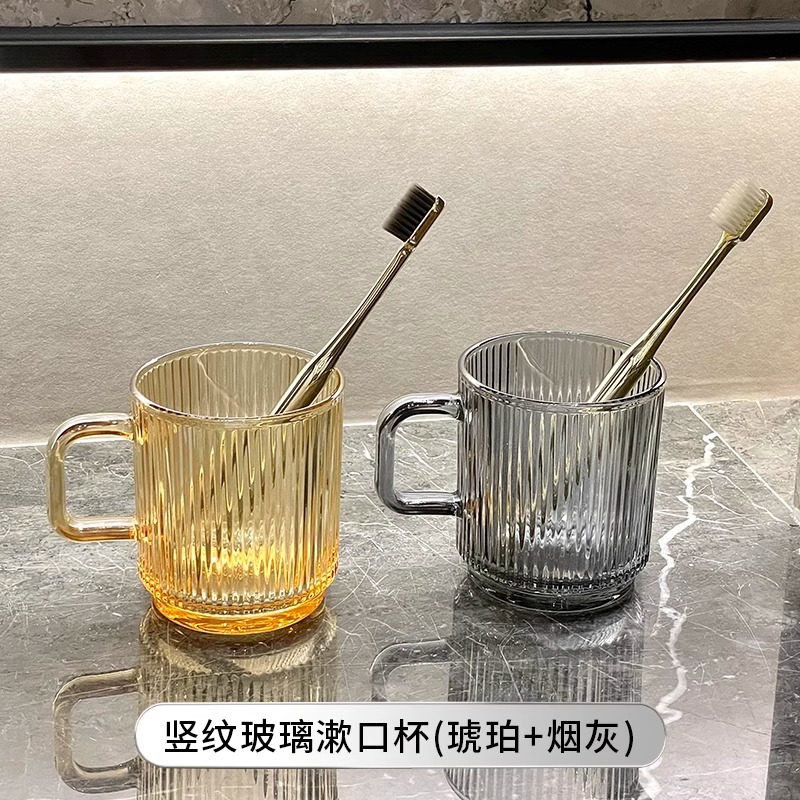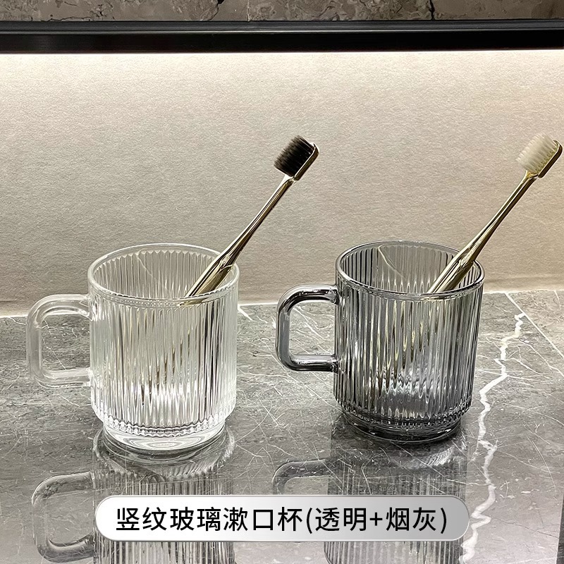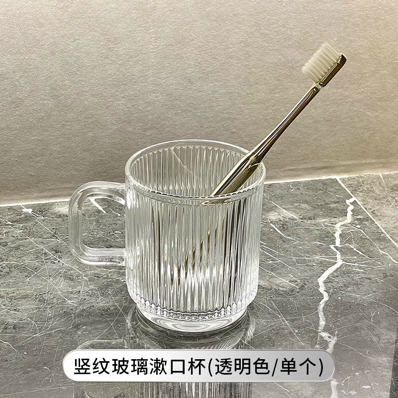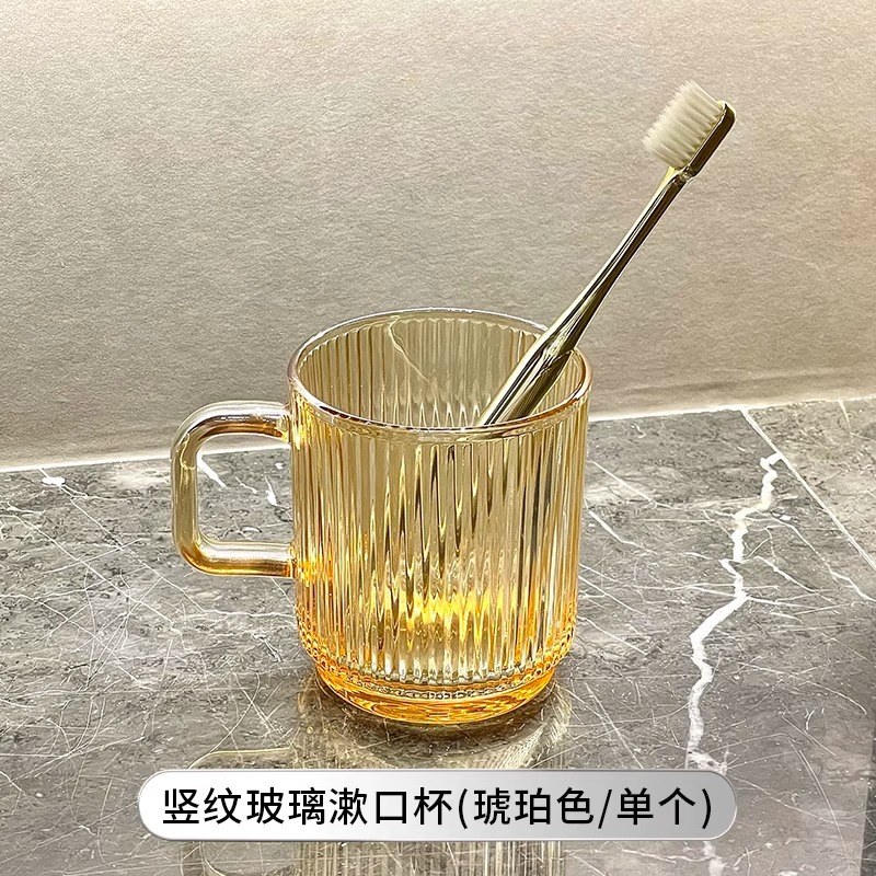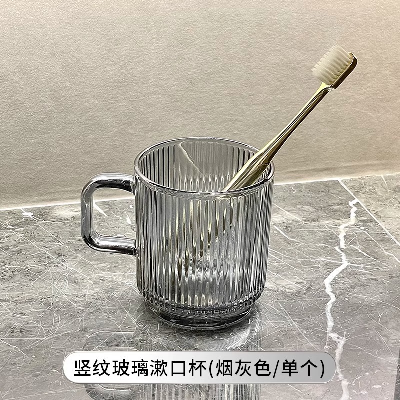 세로 패턴의 가벼운 럭셔리, 심플하고 가벼운 럭셔리 구강 세정제 컵, 고급 칫솔 컵, 가정용 칫솔 컵, 치과 컵, 유리 세면 컵스토어 가기