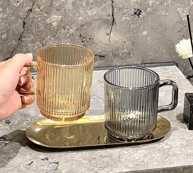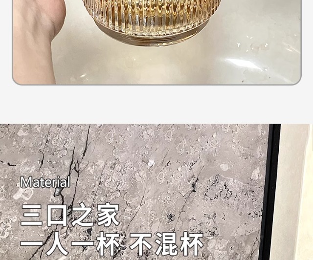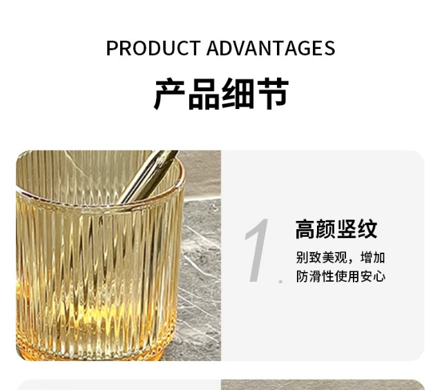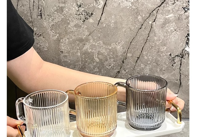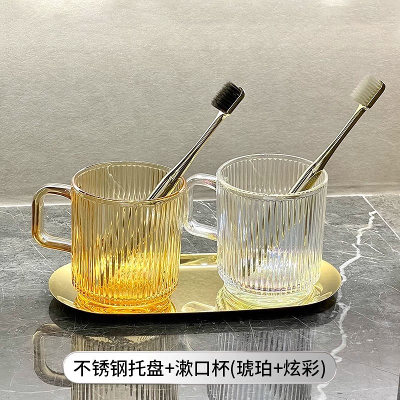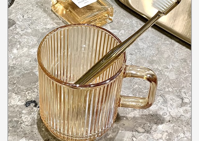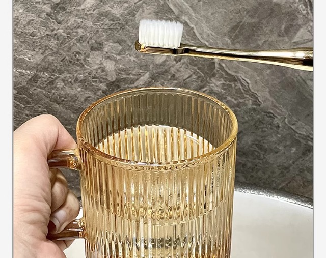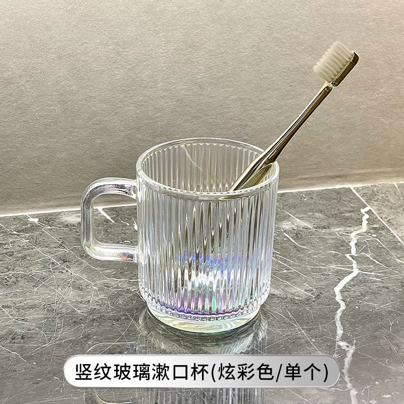 세로 패턴의 가벼운 럭셔리, 심플하고 가벼운 럭셔리 구강 세정제 컵, 고급 칫솔 컵, 가정용 칫솔 컵, 치과 컵, 유리 세면 컵스토어 가기