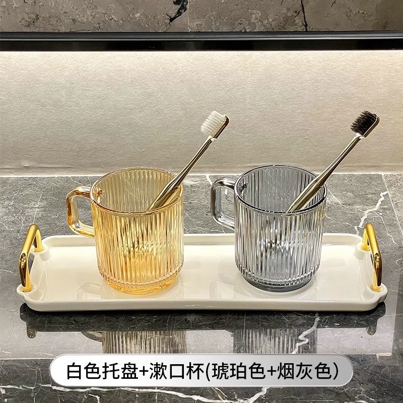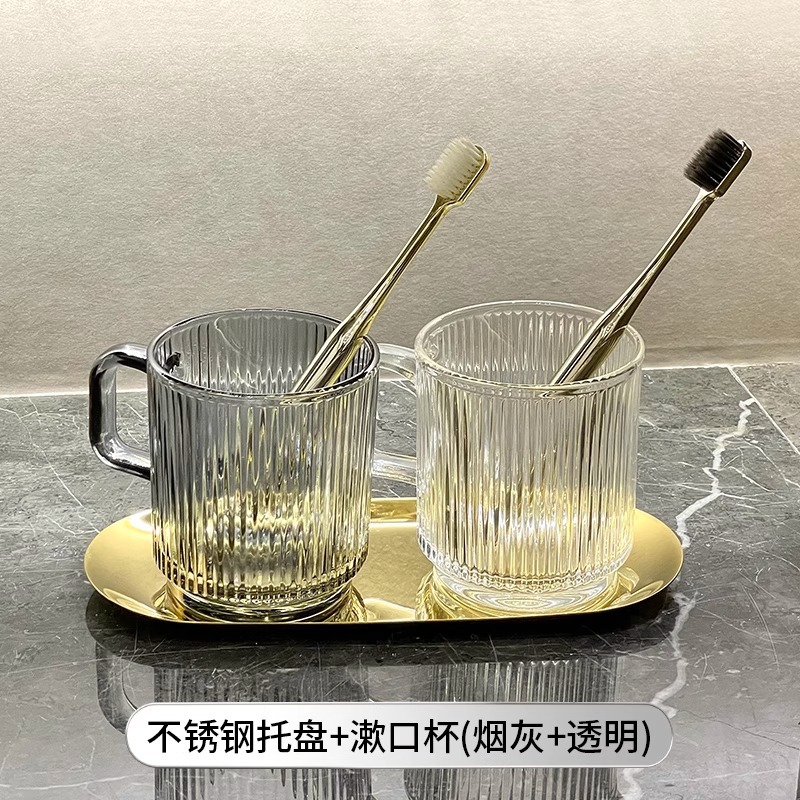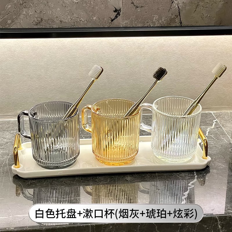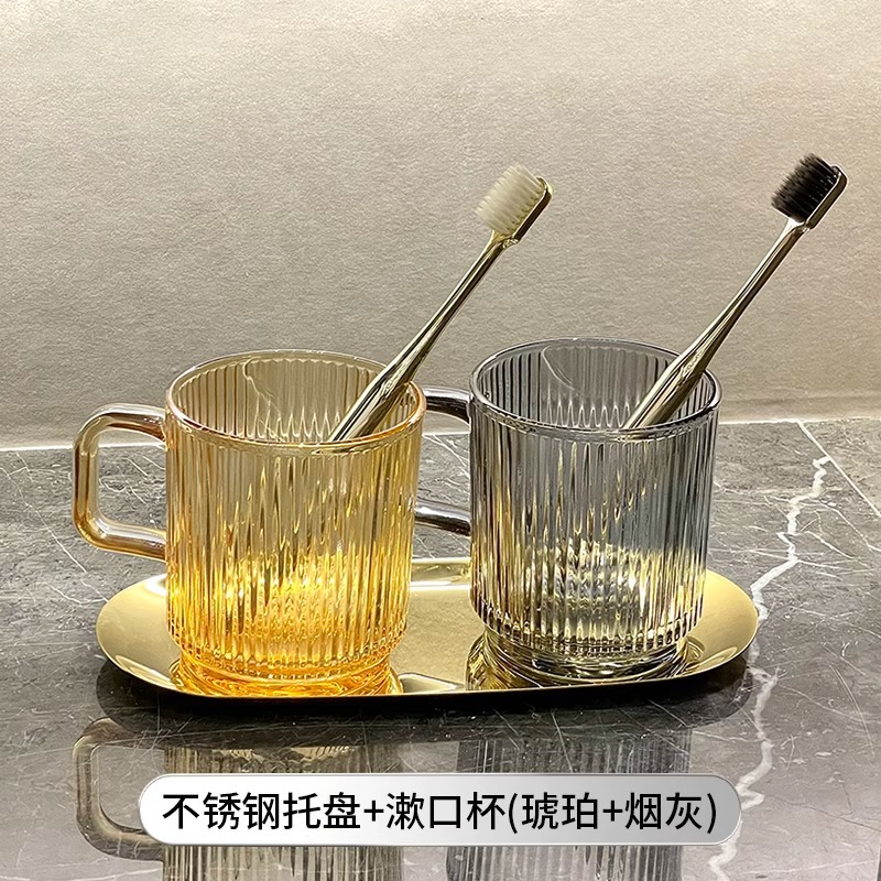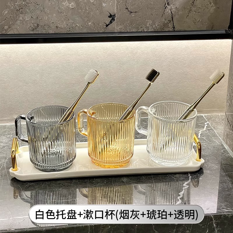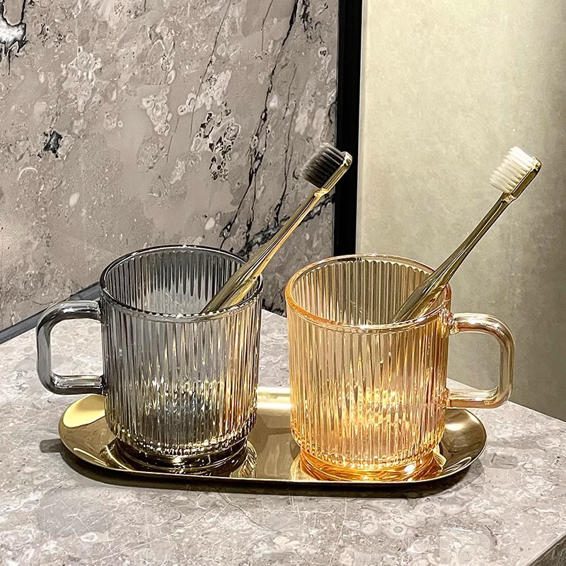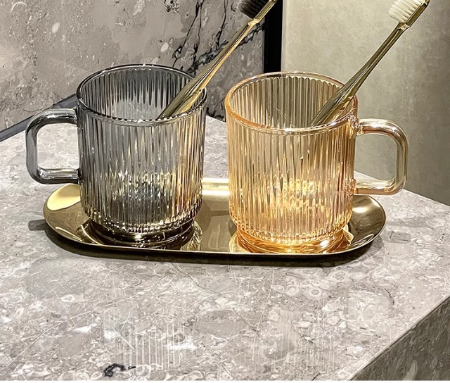 세로 패턴의 가벼운 럭셔리, 심플하고 가벼운 럭셔리 구강 세정제 컵, 고급 칫솔 컵, 가정용 칫솔 컵, 치과 컵, 유리 세면 컵
