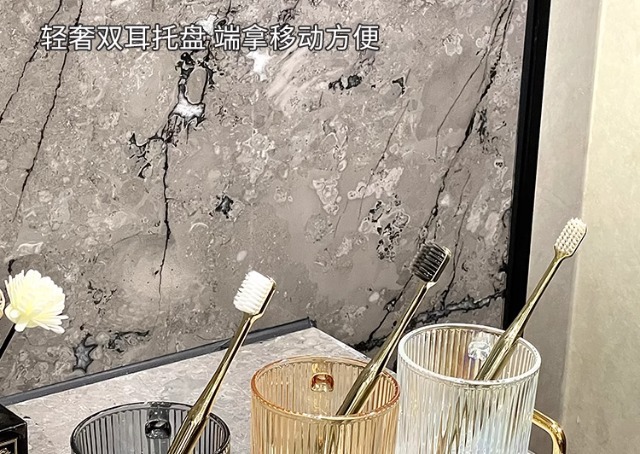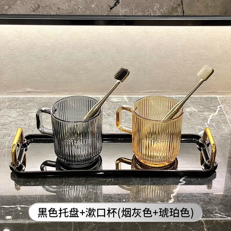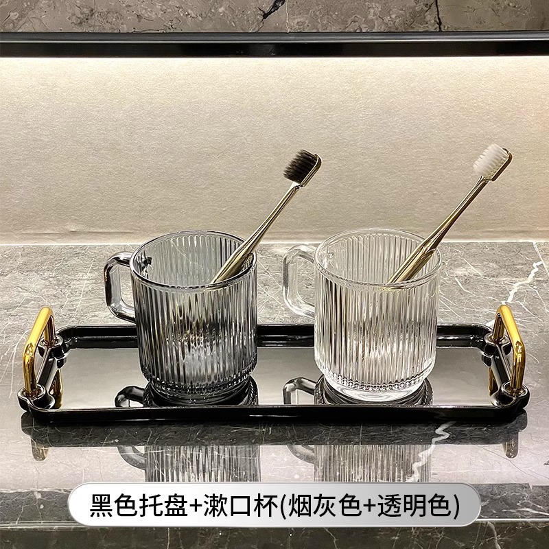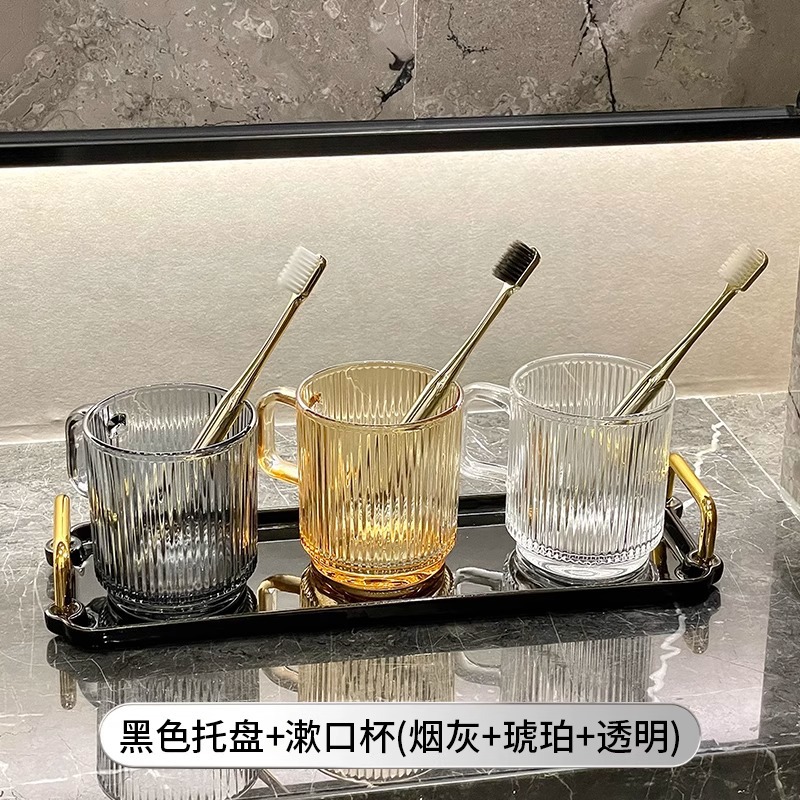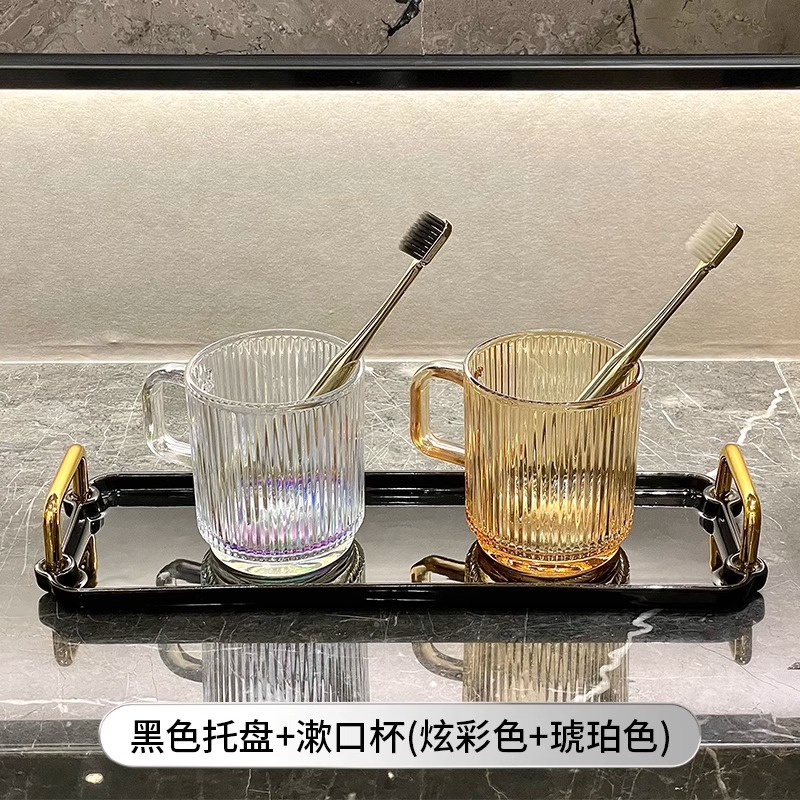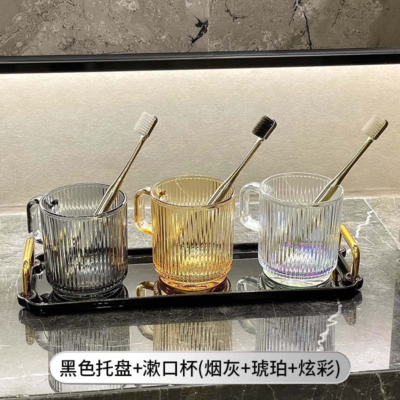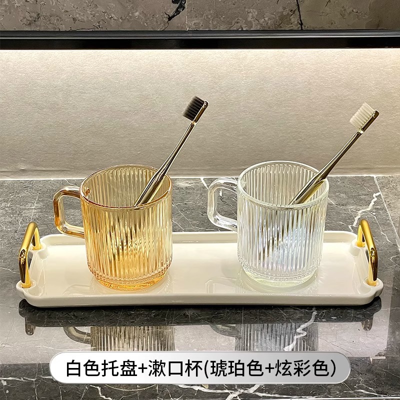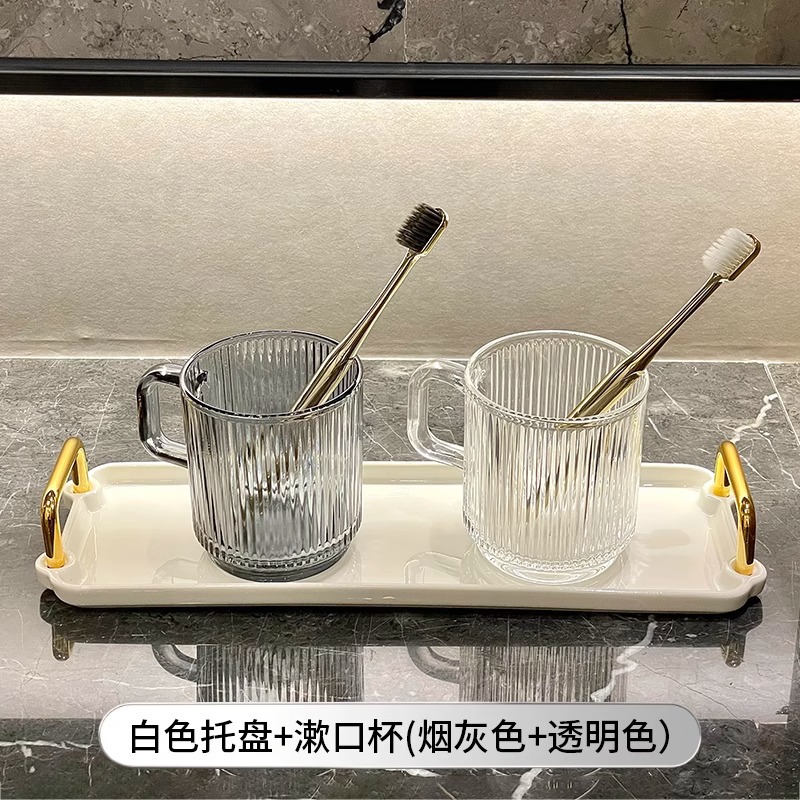 세로 패턴의 가벼운 럭셔리, 심플하고 가벼운 럭셔리 구강 세정제 컵, 고급 칫솔 컵, 가정용 칫솔 컵, 치과 컵, 유리 세면 컵