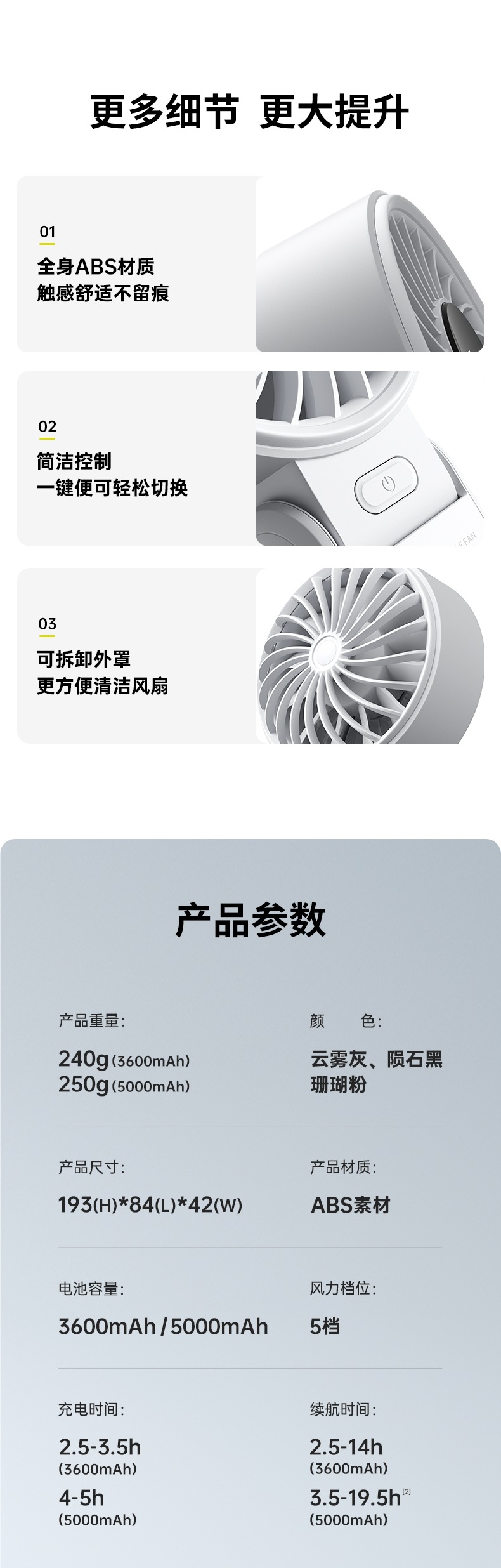 • [클라우드 그레이] 지능형 디지털 디스플레이 5단 강풍 5000mAh