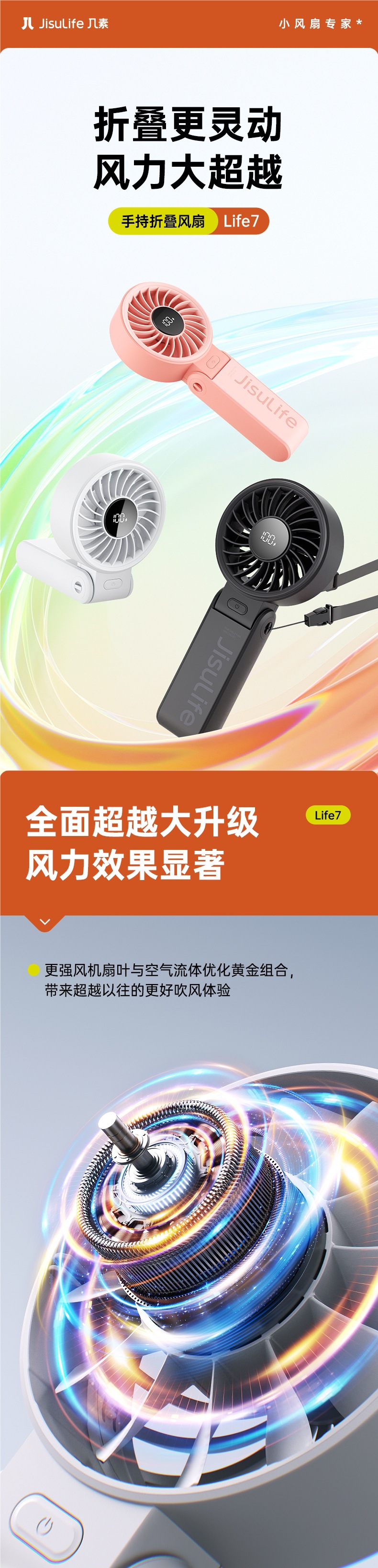Jisu 고속 에너지 절약 휴대용 소형 팬 USB 미니 휴대용 접이식 목 팬 조용한 강풍 여름