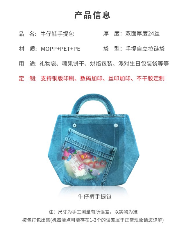 • 청바지 핸드백; MOPP+PET+PE; 22*21.5+5CM