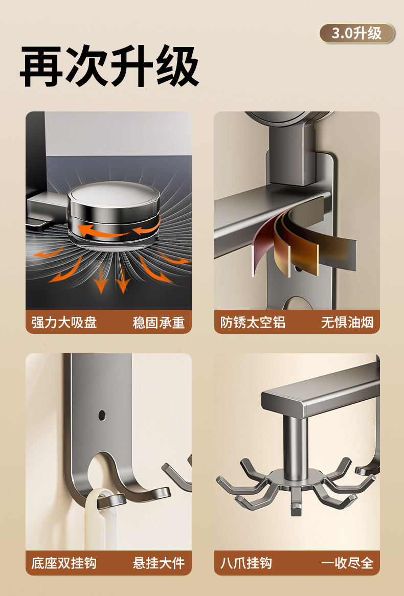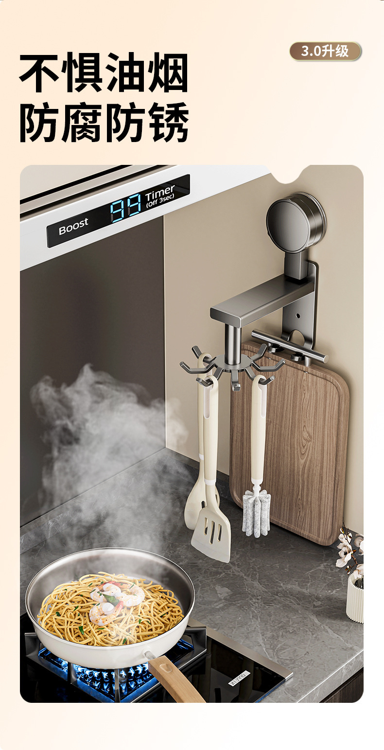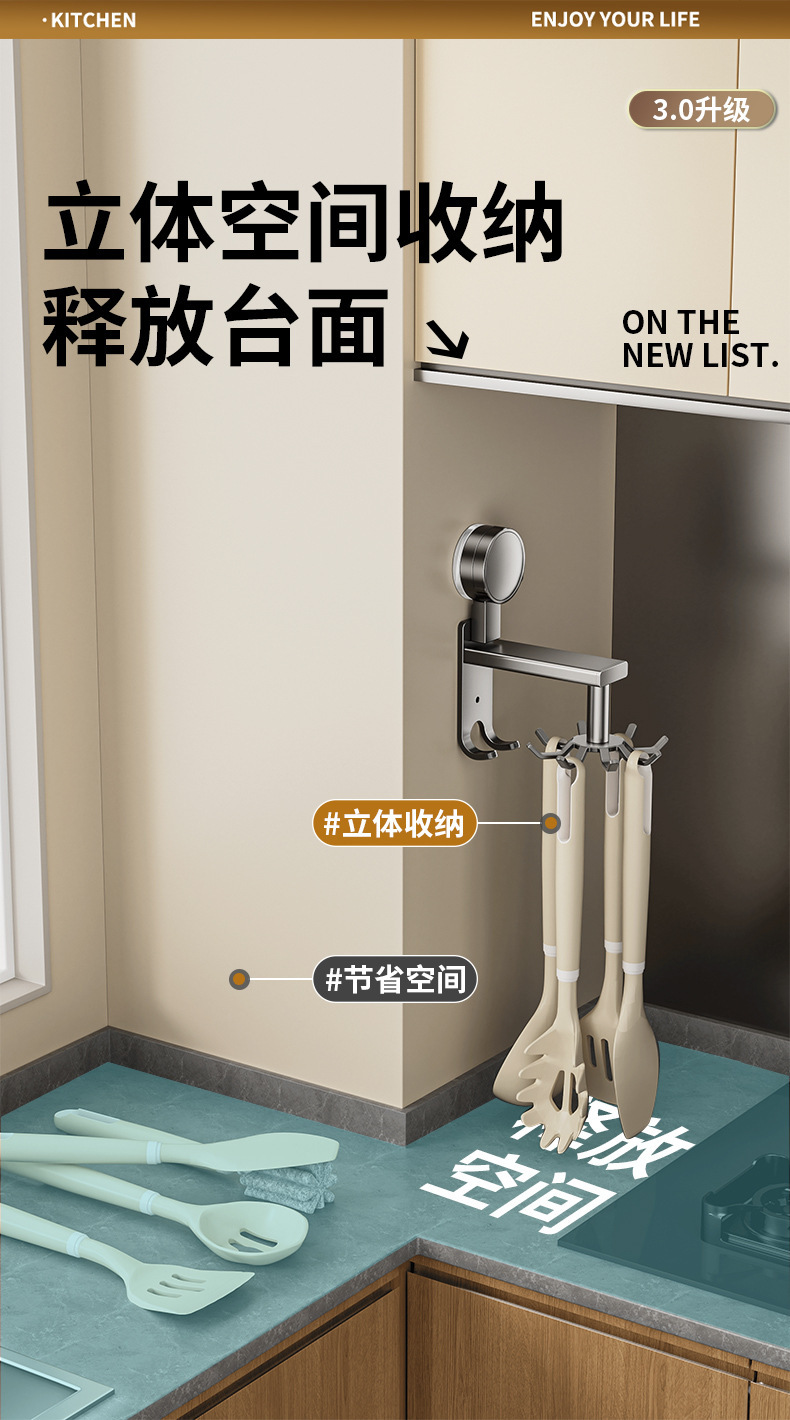 제조업체는 주방 펀치 없는 벽걸이형 주걱 및 스푼 걸이 회전 후크 주방 용품 보관함 후크를 공급합니다.스토어 가기