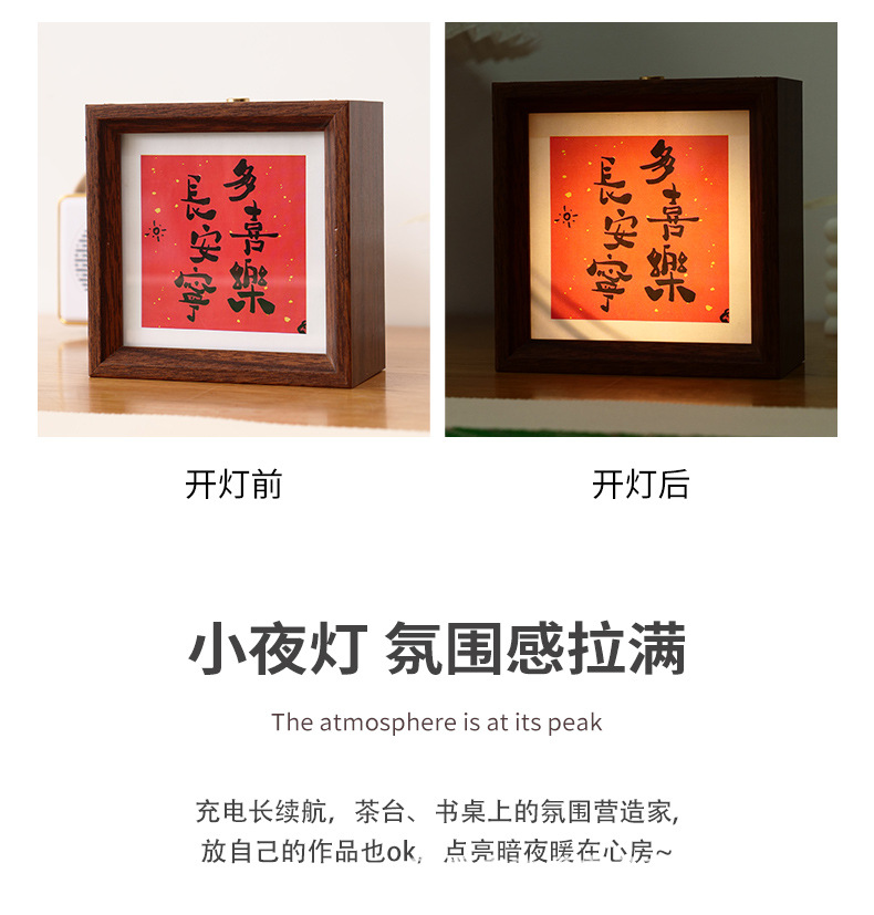 라이트 페인팅 사진 프레임 홈 새로운 중국 서예 중공 야간 조명 사진 프레임 홈 데스크탑 장식 사진 프레임 장식품
