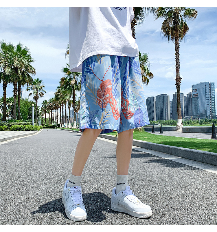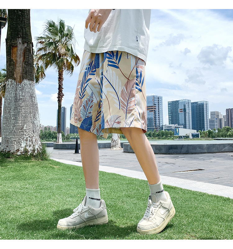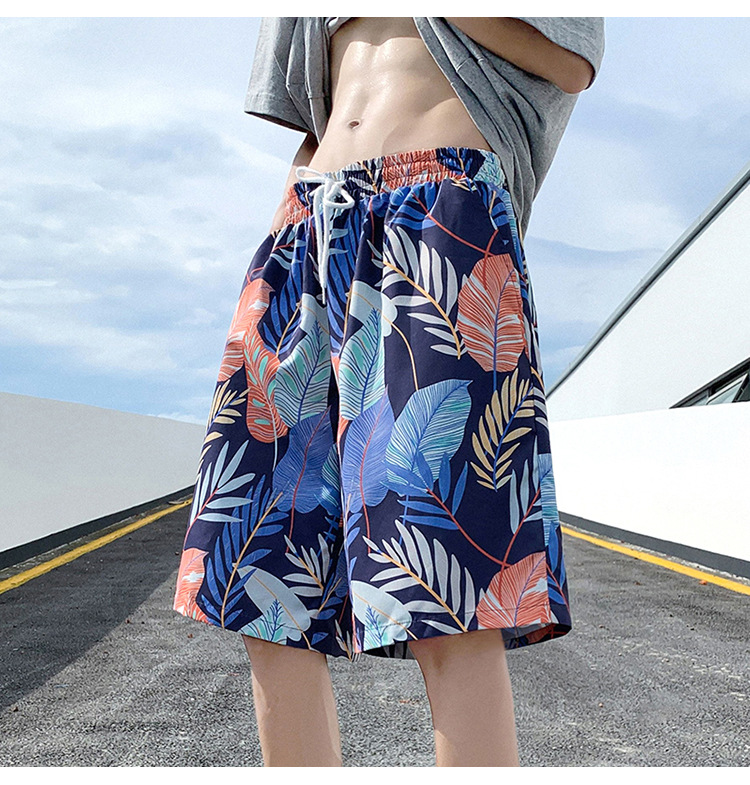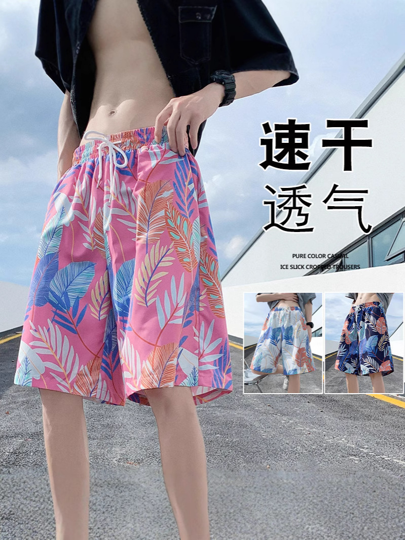 해변 캐주얼 반바지 남자의 여름 얇은 빠른 건조 수영 트렁크 유행 인쇄 큰 바지 느슨한 파자마 바지