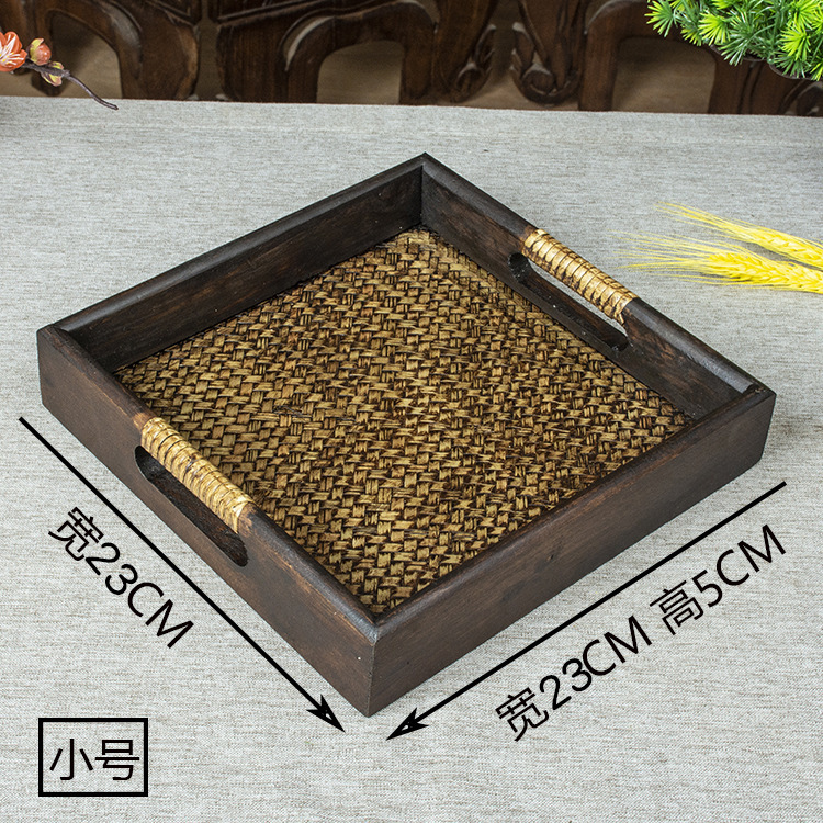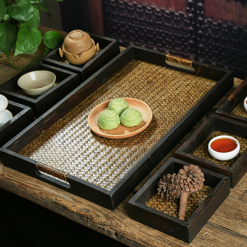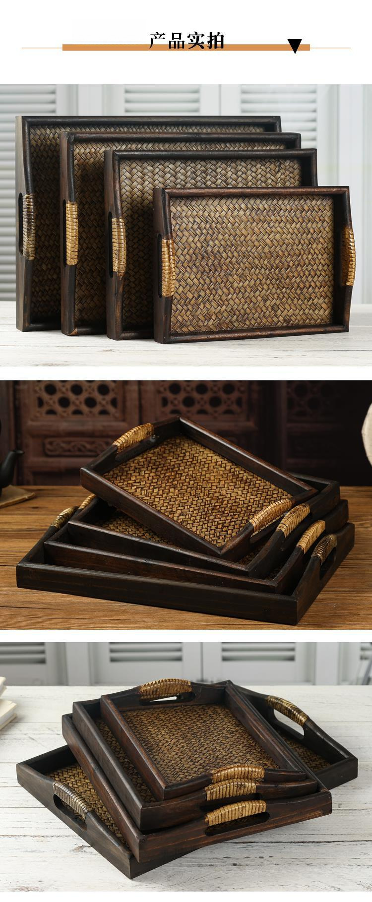 단단한 나무 찻집 보관 차 트레이 직사각형 미용실 태국 나무 복고풍 접시 트레이 태국 대나무 찻잔 트레이스토어 가기