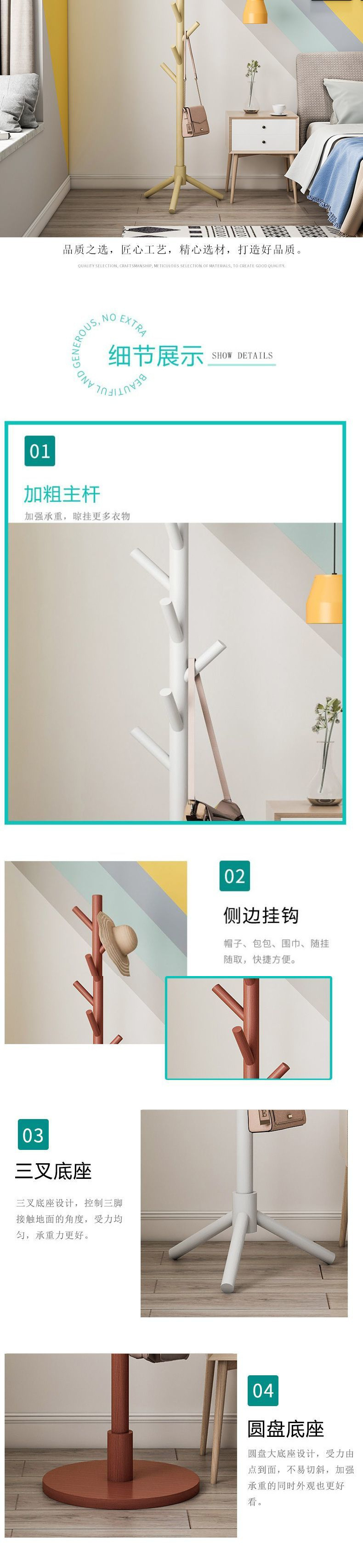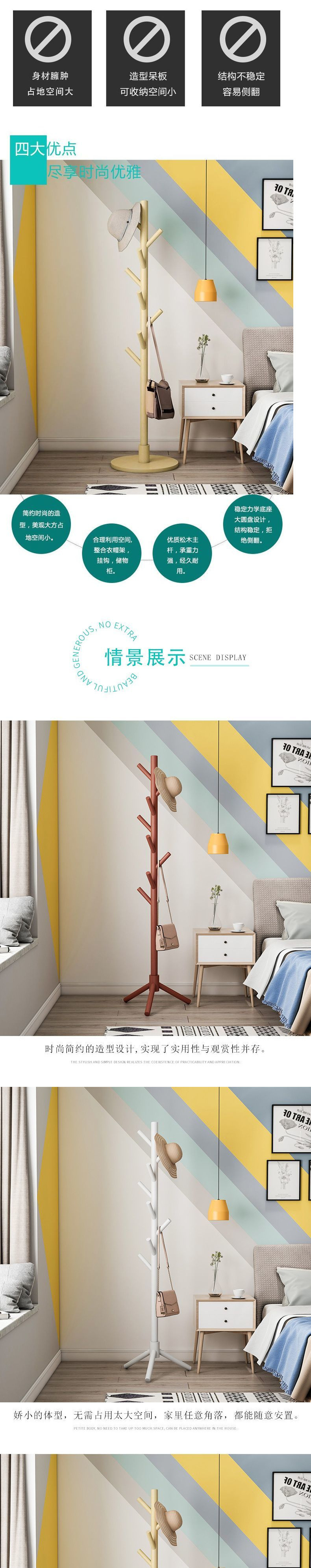 단단한 나무 코트 랙 바닥 스탠딩 수직 거실 옷 걸이 가방 랙 홈 침실 간단한 인터넷 연예인 옷 보관 랙