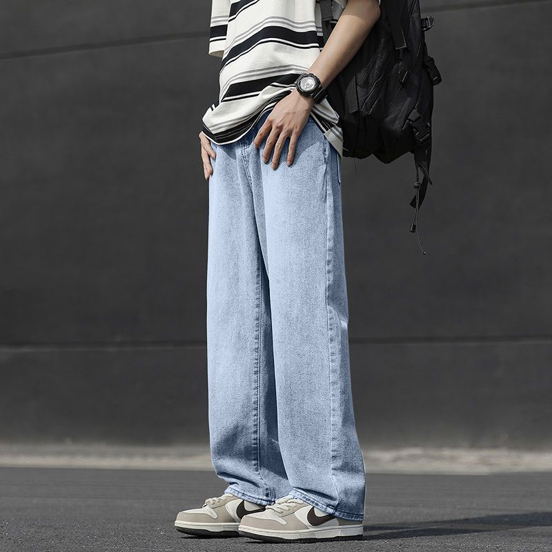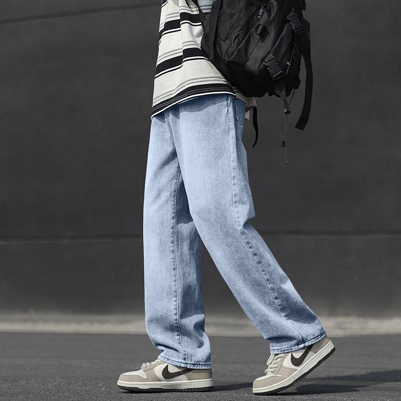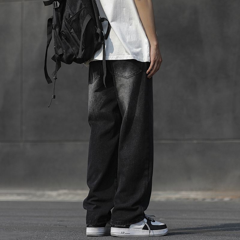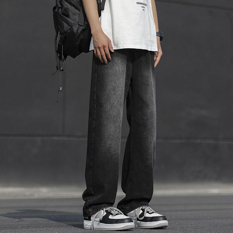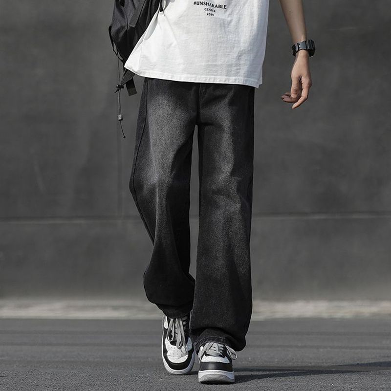 【해외 무역 전용】레트로 데님 팬츠, 아메리칸 하이 스트리트 스타일, 루즈핏, 트렌디, 활용도 높은 캐주얼 스트레이트 팬츠 (남성용)