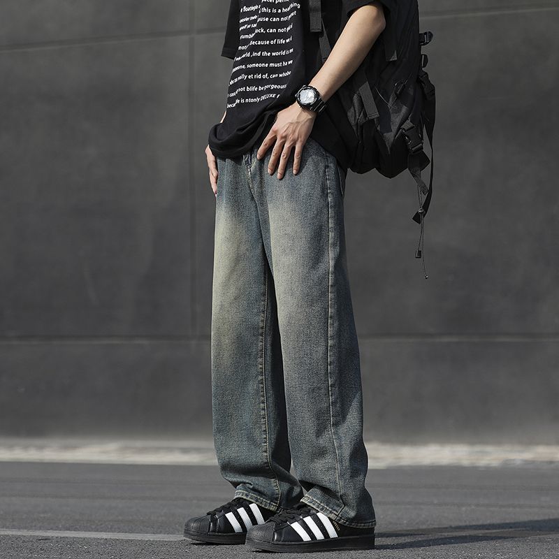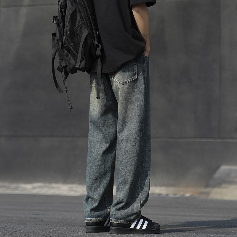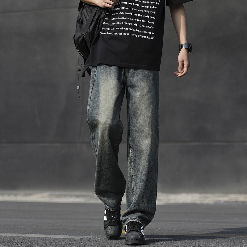 【해외 무역 전용】레트로 데님 팬츠, 아메리칸 하이 스트리트 스타일, 루즈핏, 트렌디, 활용도 높은 캐주얼 스트레이트 팬츠 (남성용)스토어 가기