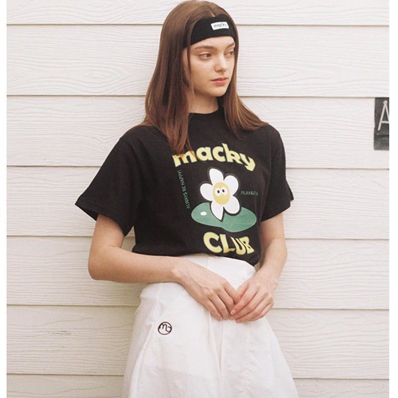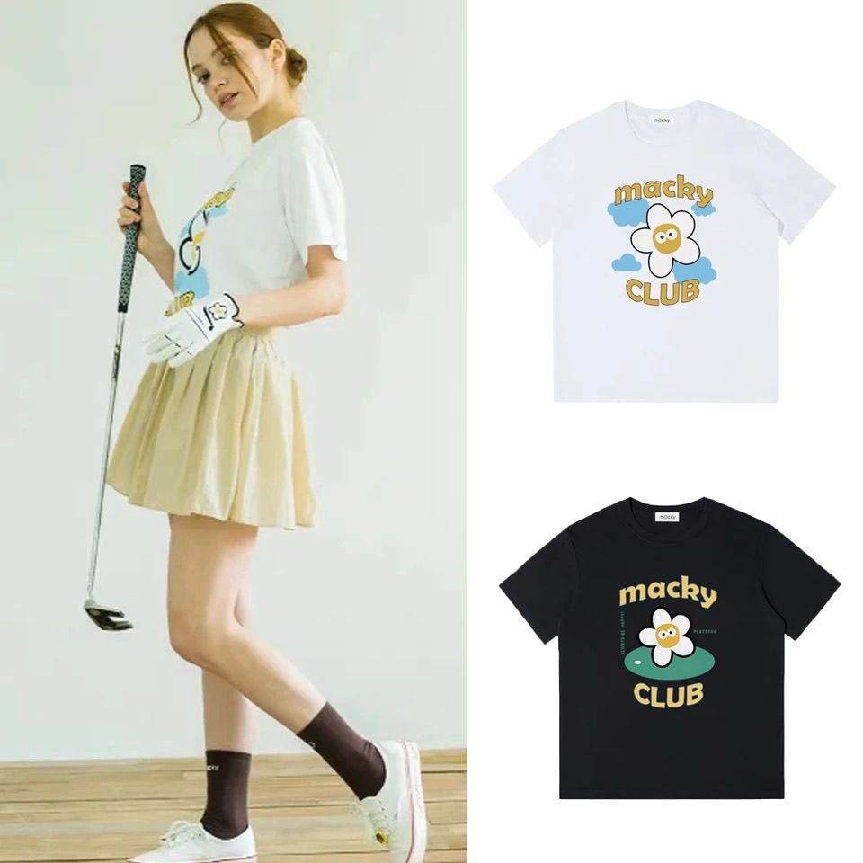 MACKY 순수 코튼 새 골프웨어 여성용 라운드 넥 루즈 반팔 캐주얼 티셔츠 여름 탑 트렌디 브랜드 대나무 섬유스토어 가기