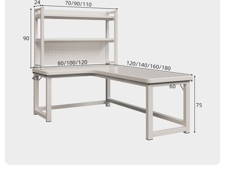 • [L자형 싱글테이블 + 타공판 책장] 따뜻한 화이트-오른쪽 스타일