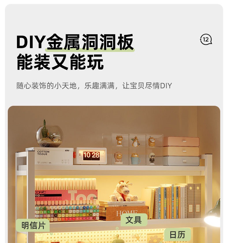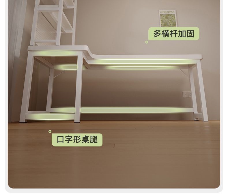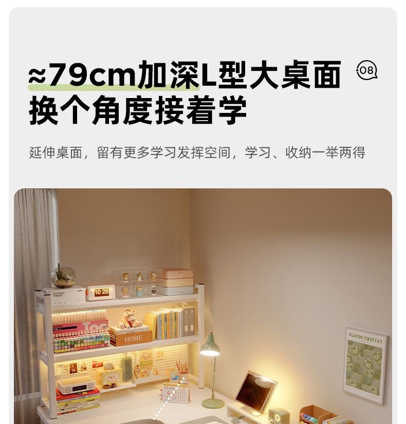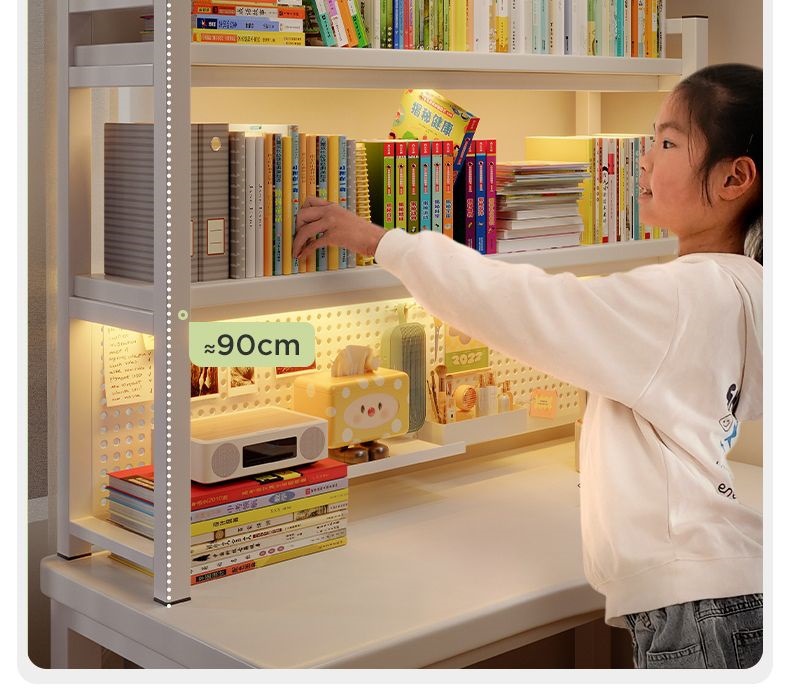 • [L자형 싱글테이블+책장] 웜화이트-라이트스타일