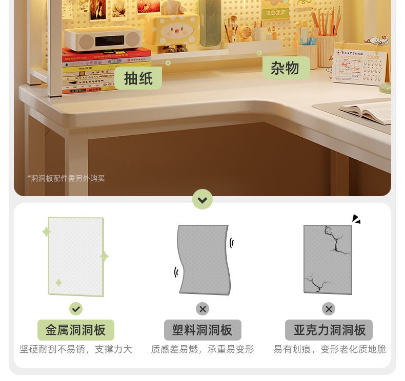 • [L자형 싱글테이블 + 타공판 책장] 웜화이트 - 왼쪽 스타일